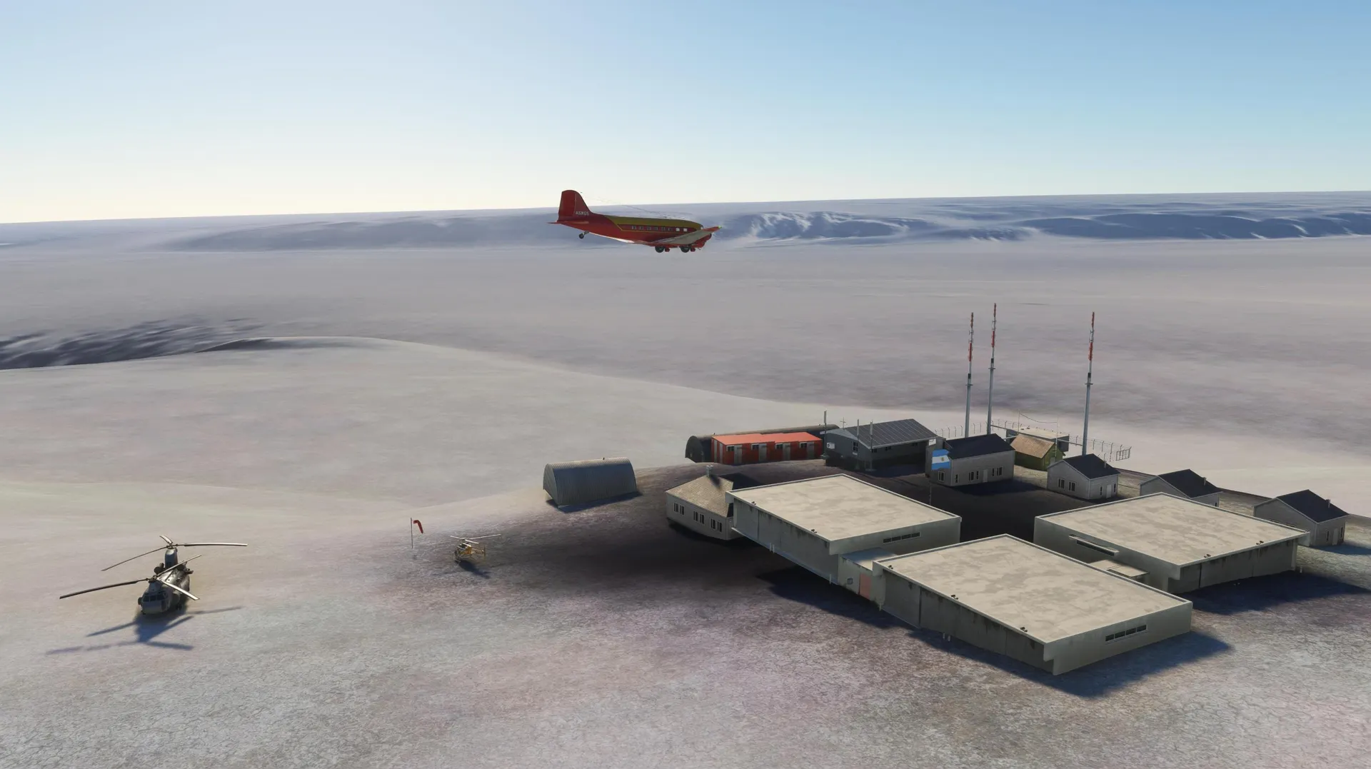 For most people, an expedition to Antarctica is certainly as far away as climbing Mount Everest. Although it is now possible to visit Antarctica as a tourist, it is much more comfortable to get a few impressions with the flight simulator. Anyone who has not yet done so will indeed be extremely impressed. Antarctica has around 100 inhabitants, but the seventh continent does not belong to any state, although some states have made claims. Nevertheless, depending on the time of year, between 1,000 and 1,300 people live in Antarctica, mainly scientists and tourists, of course. These are mainly transported and supplied by water or air. As a pilot for a supply company, you will now take on part of this task and fly in a circle around most of Antarctica, which is, incidentally, much larger than the European continent.In a total of 8 legs, you will cover 9,100 kilometers (4,900 nautical miles), which initially sounds like very long flight distances. If the legs seem too long, you can shorten the time with a specially implemented teleport function. As there are only a few landing strips in Antarctica in the flight simulator, 6 new snow airfields have been created for this expedition and 3 existing airfields have been modified. All runways have a smoke signal and lighting to make them stand out from the snowy landscape. All research stations depicted in the MSFS that are approached have been supplemented with fictitious buildings and can now be recognized as such. The DC-3, which was mainly used for transportation between 1948 and 1968, is used as the aircraft. Those who prefer to transport passengers and like it more modern and faster can use the TBM 930 for this mission. The aircraft on offer are ideally suited for snow and ice slopes and are equipped with GPS navigation. As there are hardly any distinctive terrain markings in the Antarctic, a VFR flight is not possible without additional navigation equipment such as a sextant and drift meter. You can find out how to obtain the GPS course here: https://www.koschis-web.de/en-us/help-support#gps The package also includes a second mission with a private jet that takes you directly over the South Pole. The texts are machine translated into English, French, Spanish, German, Italian, Polish, Portuguese (Brazil and Portugal), Chinese, Japanese, Dutch, Finnish, Norwegian, Swedish, Korean and Turkish. If you find any translation errors, please let us know. All flights can be found under Activities -> Custom Content. Many functions are unlocked in the options with which you can customize your flight experience.