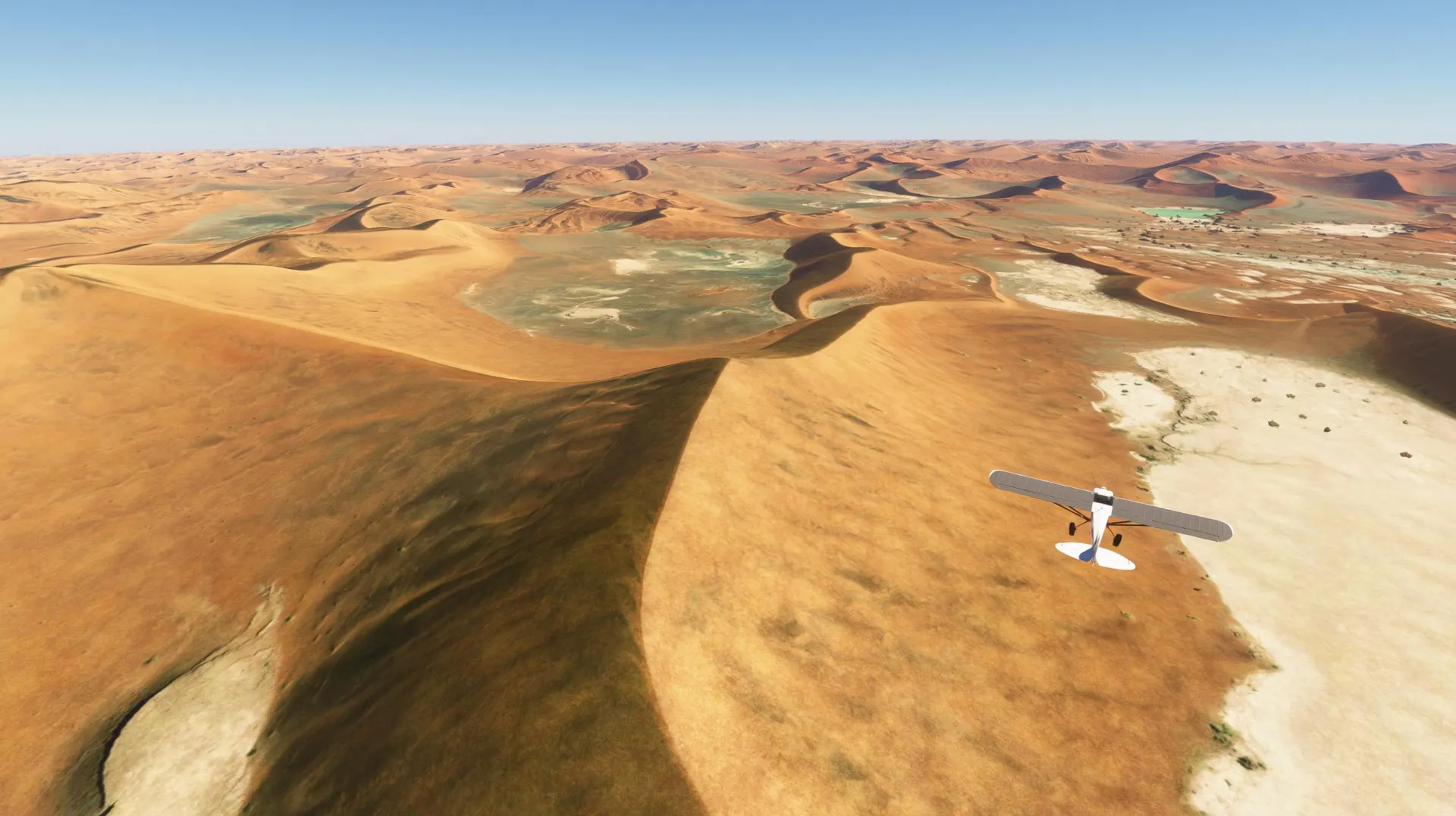 In the previous parts of “Unique places”, you have mainly seen places that were created by human hands, such as geoglyphs, secret places or buildings. Yet our planet is full of wonders created by nature. I can imagine that you have already flown over Mont Blanc, Mount Everest or the Caribbean islands. But there is so much more to discover. I realize that you know that. The only question is; where should you start and where should you continue? There is so much beauty on this wonderful earth. So with these flights of discovery, I would like to nudge you a little with your nose towards a few dreamlike landscapes that you may never have thought of before: - Lena Delta, Russia - Namib Sand Sea, Namibia - Cono de Arita, Argentina - Please smile - a smiley face made of islands - The bear and the heart - Fascinating lake landscape in AustraliaDuring these discovery flights, you never fly directly towards the chosen object. You have to follow directions to find it. This makes the flight a little more exciting and you can discover lots of other interesting things in the simulator along the way. But don't worry, you will always find it. After a certain amount of searching, a widely visible marker will show you the object you are looking for. This can give your ambition an extra boost. Find what you are looking for before the marker appears.