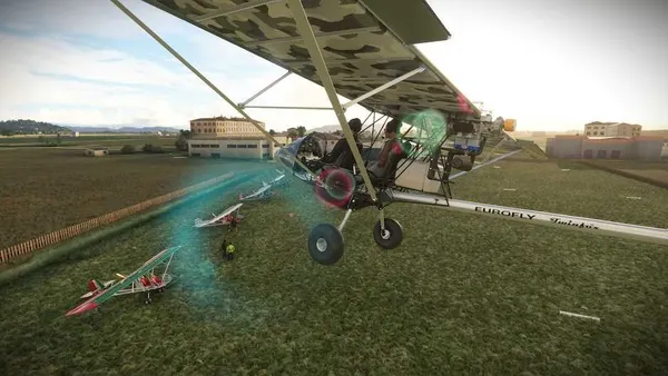 FLIGHT SCHOOL: TRAFFIC CIRCUIT The first day is dedicated to training on the special traffic circuit at the Eurofly base, where you will learn how to manage speed, altitude, and turning points correctly in order to perform the maneuvers. You will have to fly in tight spaces and avoid obstacles while maintaining control of your ultralight aircraft, until you learn how to stop it in just a few meters.