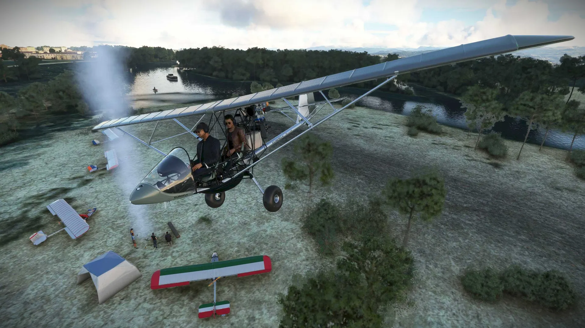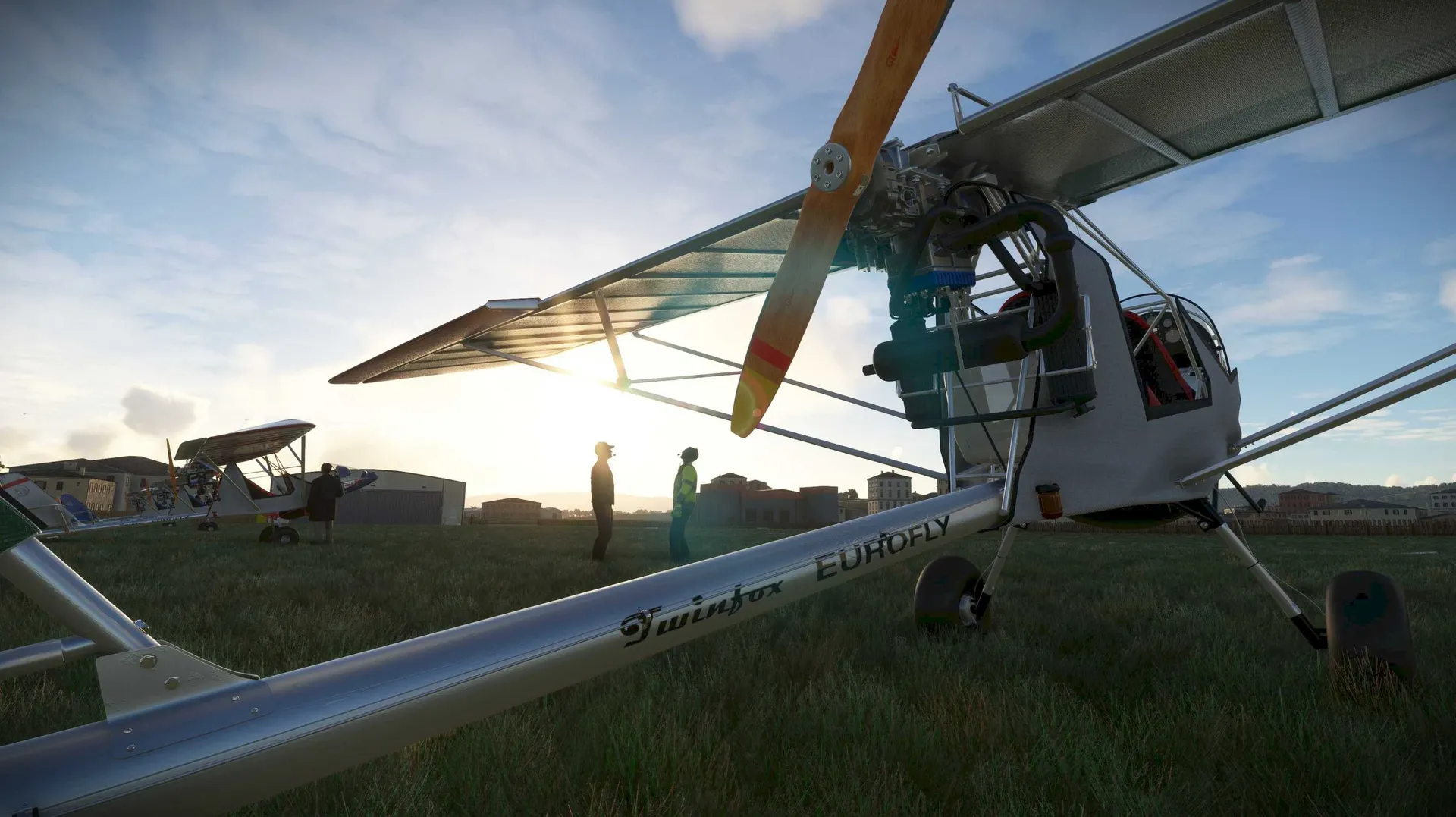 INFORMATION It's the middle of summer and this is a very special vacation for James, who has decided to pick up his new Twinfox ultralight aircraft directly from the Eurofly factory in northern Italy, spending a few days with a friend and the company staff, who will help him get to know his new aircraft better. Unforgettable moments and challenging experiences await him with his new friends, marking only the beginning of his adventures with the Twinfox.
