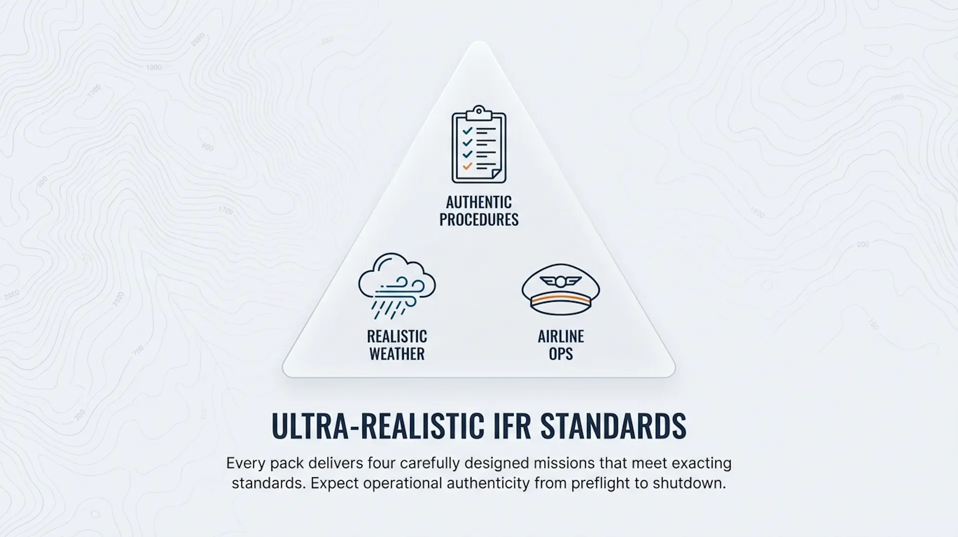 ■ Height Ultra-Realistic IFR Missions Every pack delivers four carefully designed missions that meet the exacting standards established by Perfect Flight, ensuring authentic procedures, realistic weather scenarios, and genuine airline operations.