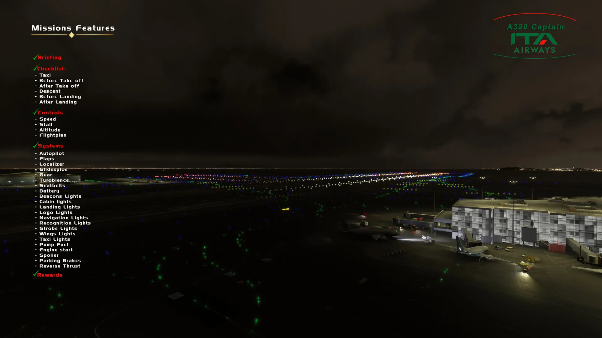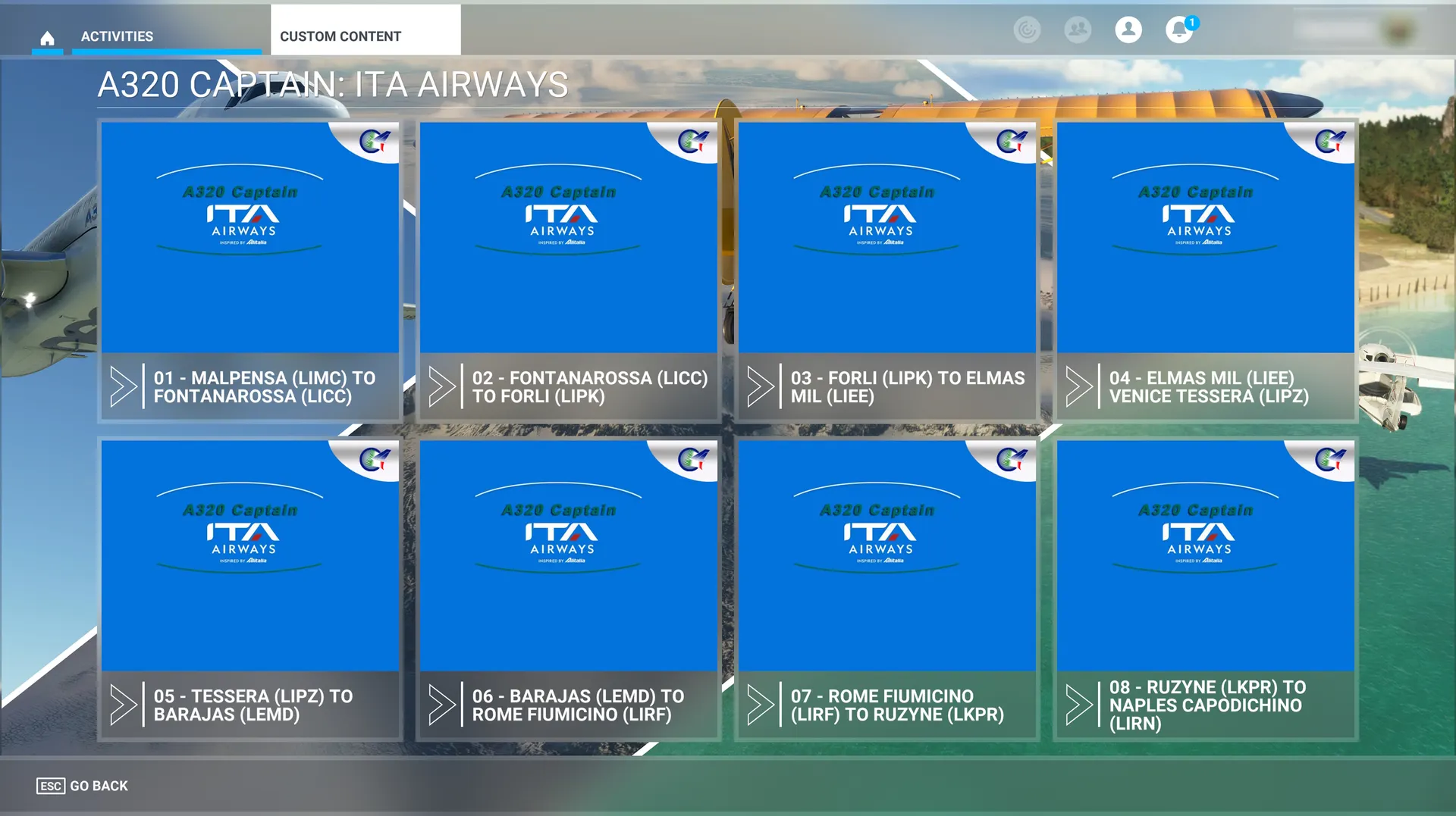 A320 Captain - ITA AIRWAYS - Experience the professionalism and prestige of Italy's flag carrier through this comprehensive mission collection designed for the Airbus A320neo. Eight meticulously crafted IFR flights span the breadth of European aviation, connecting iconic destinations across Italy, Spain, and Central Europe through realistic airline operations.
