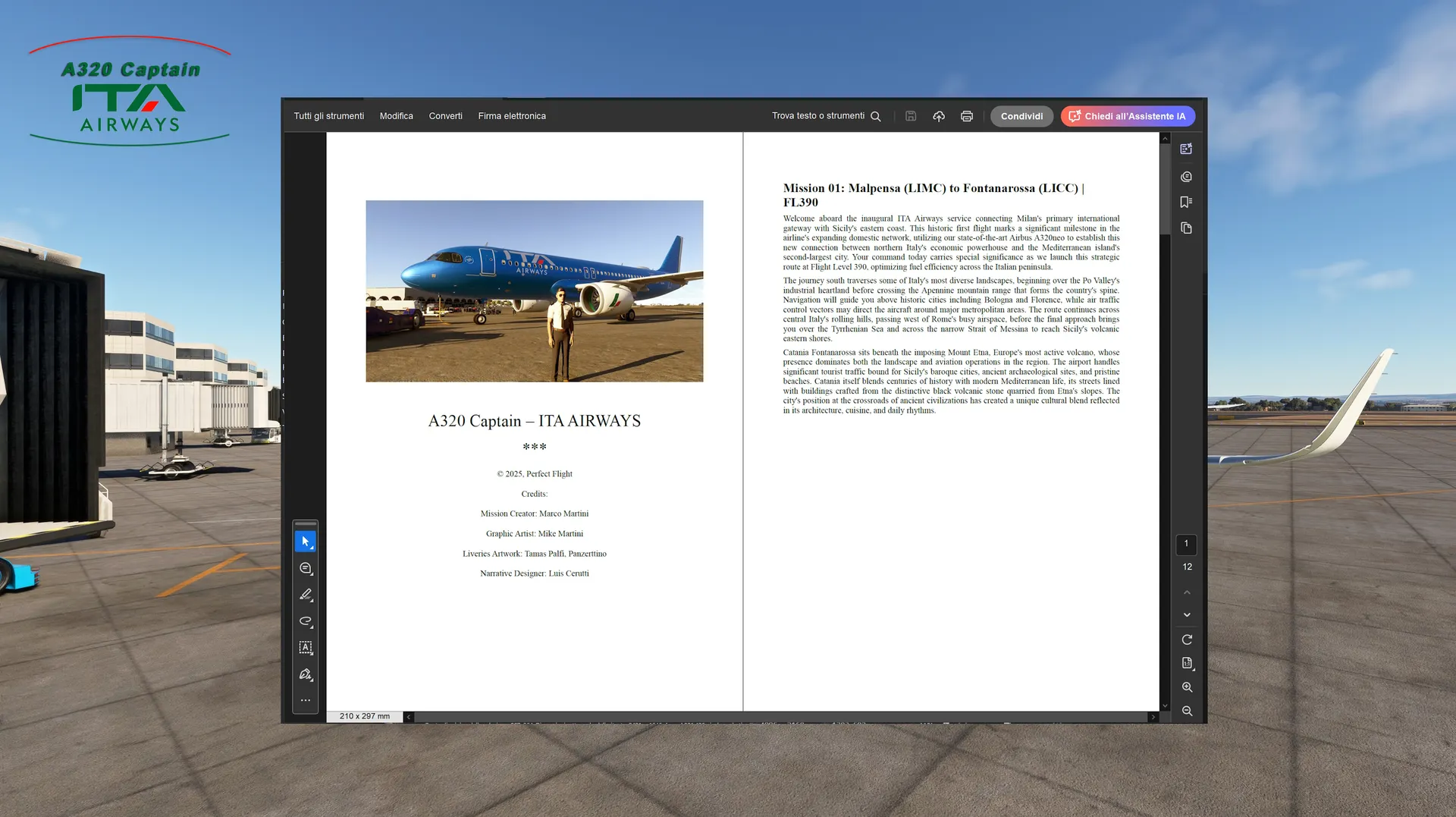 ■ Mission Pack - This mission pack captures the operational diversity of contemporary European aviation, from domestic Italian connections linking Sicily's volcanic landscapes with northern industrial centers, to international services connecting historic capitals across multiple national airspaces. Each flight presents unique challenges reflective of real-world airline operations, including military airport coordination, complex European ATC procedures, and diverse airport environments ranging from regional facilities to major international hubs.