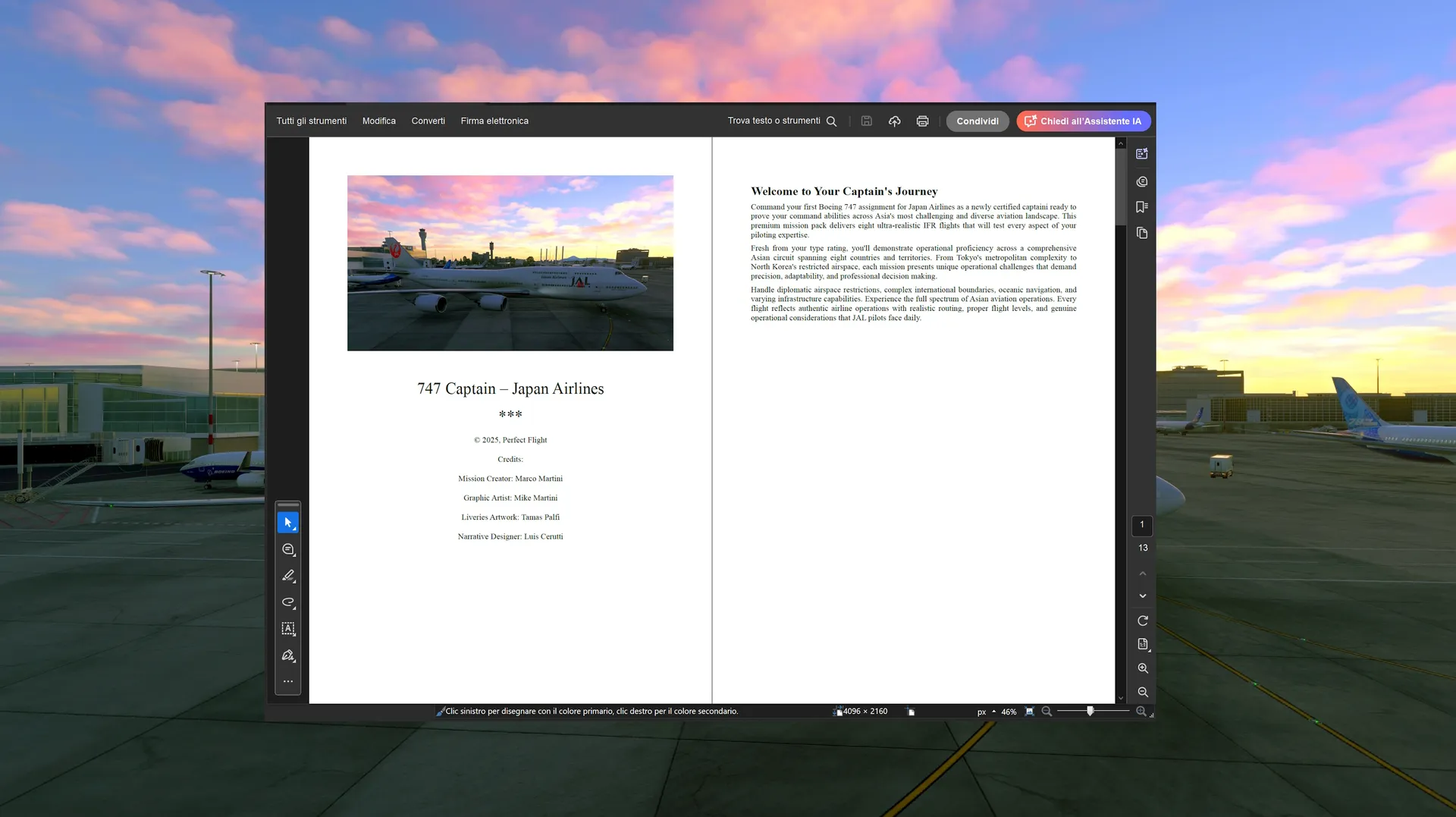 Credits: Mission Creator: Marco Martini Graphic Artist: Mike Martini Liveries Artwork: Tamas Palfi Narrative Designer: Luis Cerutti