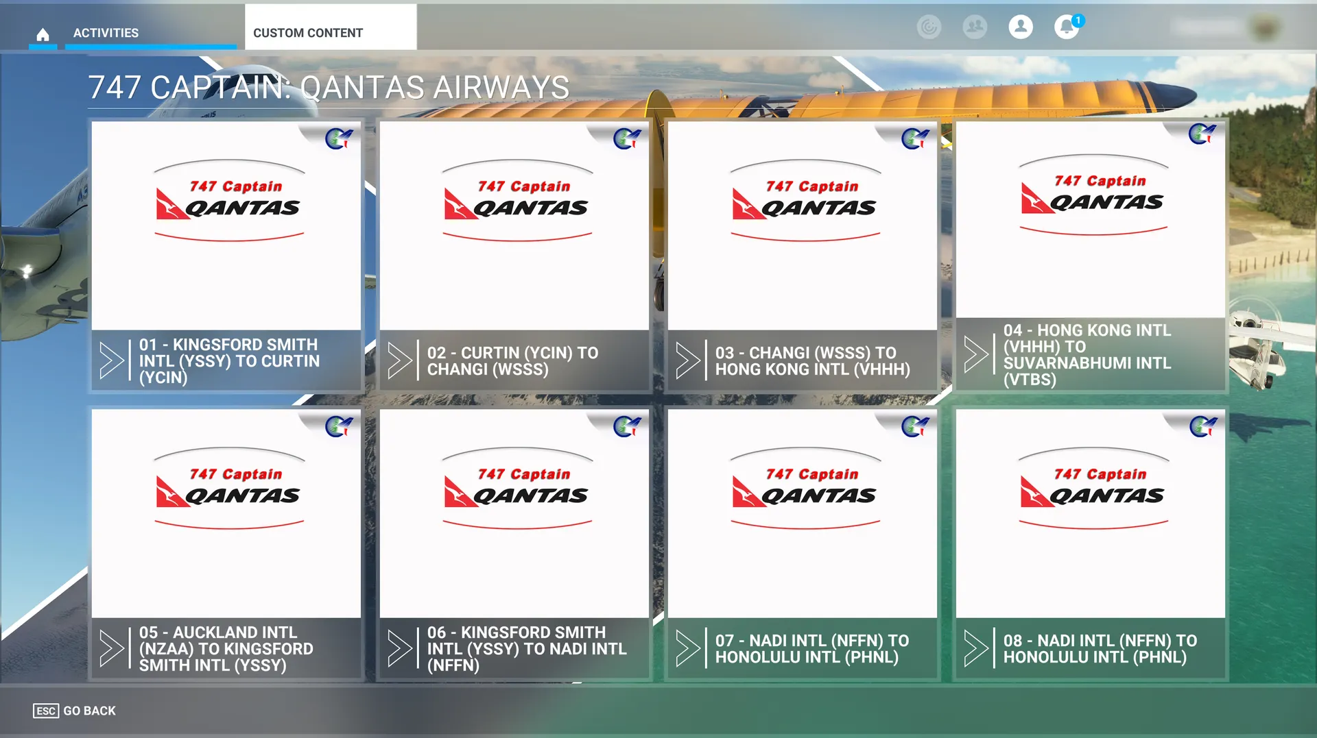 Experience the pinnacle of commercial aviation with our 747 Captain - Qantas Airways mission package, featuring eight meticulously crafted IFR flights that showcase the extraordinary diversity and beauty of the Pacific region. Each destination offers its own unique character: witness the dramatic contrasts between urban sophistication and untamed wilderness, experience the cultural richness of Asia's major aviation hubs, and discover the pristine beauty of Pacific island chains.