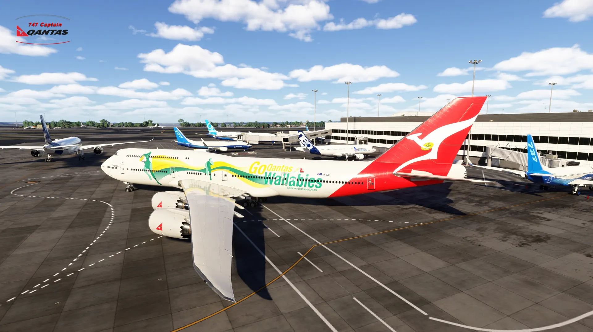 ■ Authentic Qantas Experience - The pack features the meticulously reproduced Qantas livery, bringing the authentic spirit of Australia's flagship carrier to your cockpit. The distinctive red logo with the kangaroo and the classic white fuselage, decorated with the Wallabies paint scheme, create an immersive brand experience that honors Qantas Airways' proud heritage as one of the world's most respected airlines.