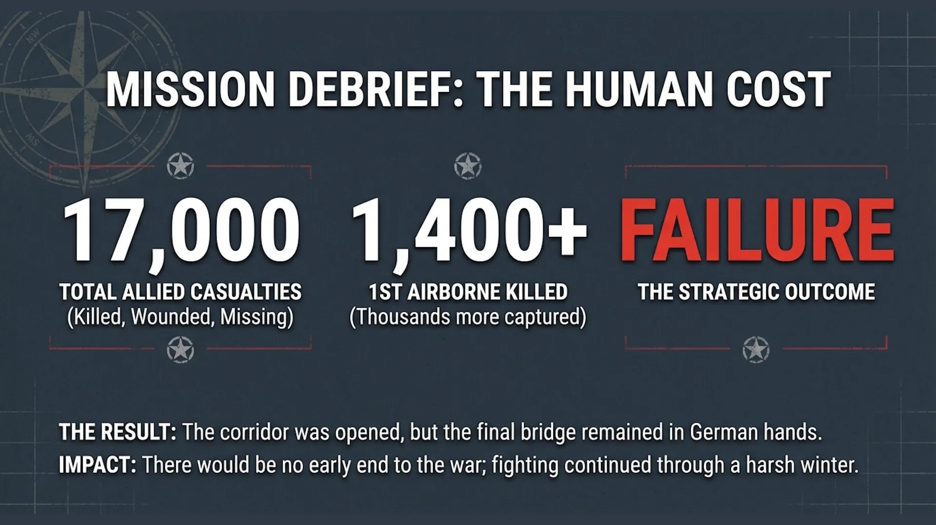 Educational Value This tour offers profound insights into military strategy, airborne operations, combined arms coordination, and the human cost of war. Nearly 17,000 Allied casualties, including over 1,400 killed from the 1st Airborne alone, remind us that courage and sacrifice often transcend victory and defeat. The operation also highlights the critical role of Dutch civilians and resistance fighters who provided intelligence, shelter, and support despite facing brutal reprisals