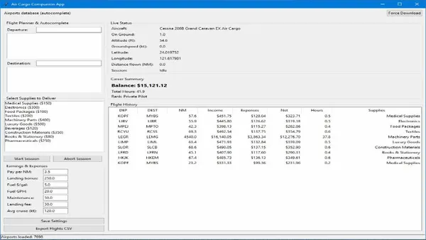 - Make sure that the flight simulator is running before starting the Air Cargo Companion App.