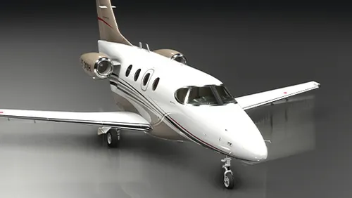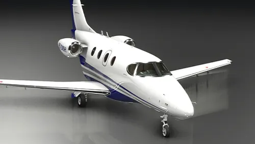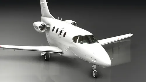 The B390 is a twin-engine, light business jet designed for high performance, comfort, and efficiency in the light jet category. It first flew in 1998, with production continuing through the late 2000s. Constructed primarily from advanced composite materials, the B390 features a sleek, low-wing monoplane design with a T-tail configuration and retractable tricycle landing gear. Its carbon fiber fuselage contributes to a spacious cabin and reduced weight, offering seating for up to six passengers plus one or two pilots.