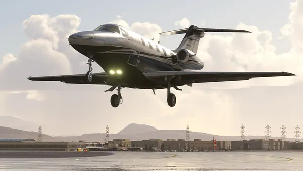 The aircraft has a range of approximately 1,350 nautical miles, a service ceiling of 41,000 feet, and a maximum climb rate of around 3,000 feet per minute. It requires roughly 3,800 feet of runway for takeoff and 3,500 feet for landing. The B390 cruises at 370 knots with a maximum speed near 450 knots, offering jet-class speed in a compact and cost-effective platform.