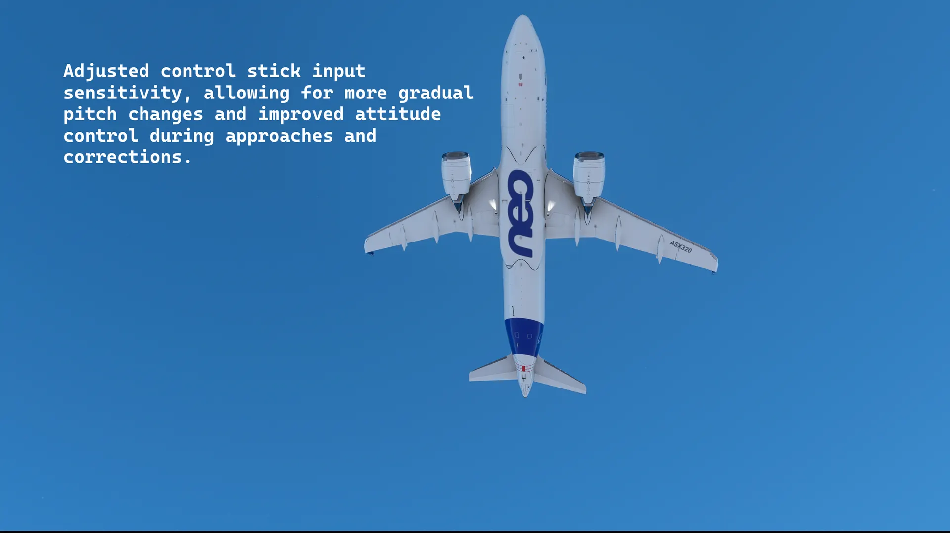 This product introduces targeted modifications to the behavior of the Airbus A320neo, focusing on control response and ground handling during taxi, takeoff, and landing.