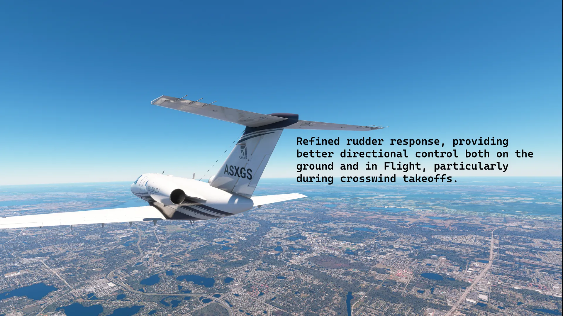This product introduces targeted modifications to the behavior of the Cessna Citation CJ4, focusing on control response and ground handling during taxi, takeoff, and landing.