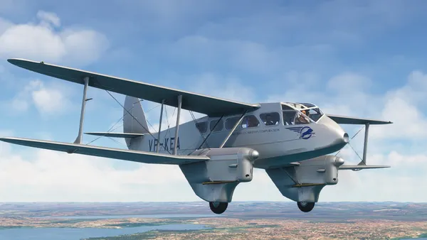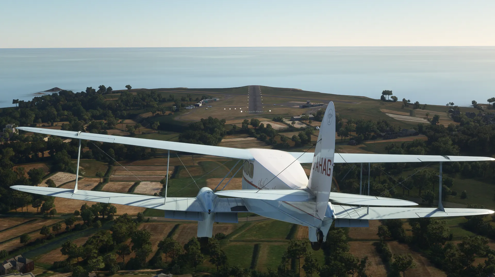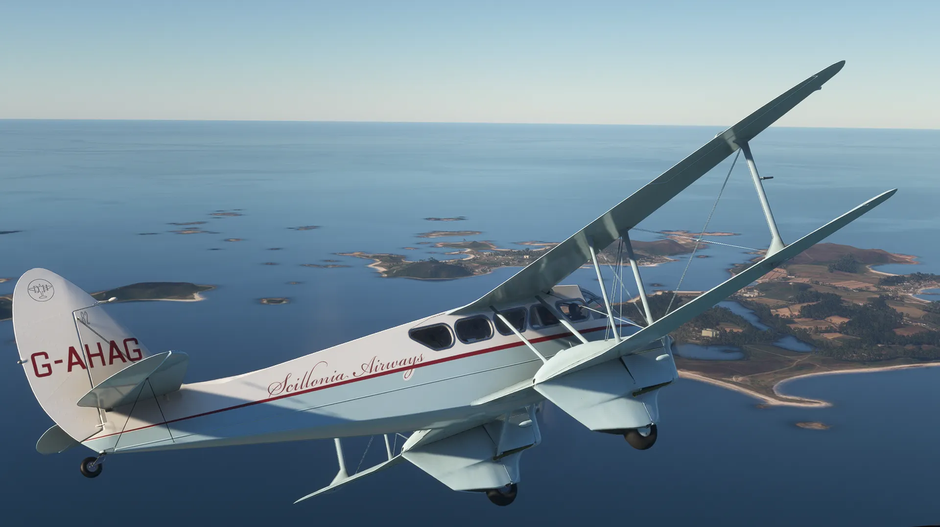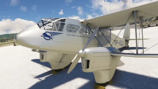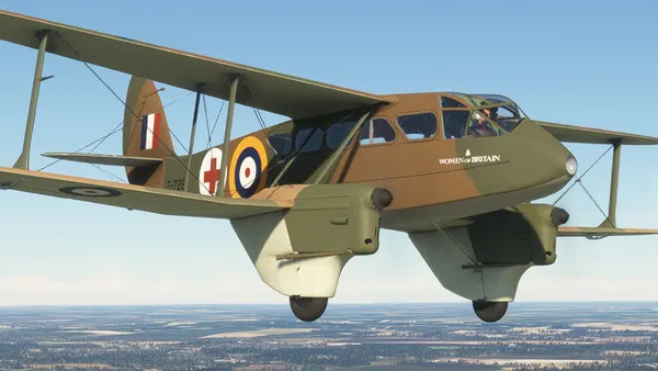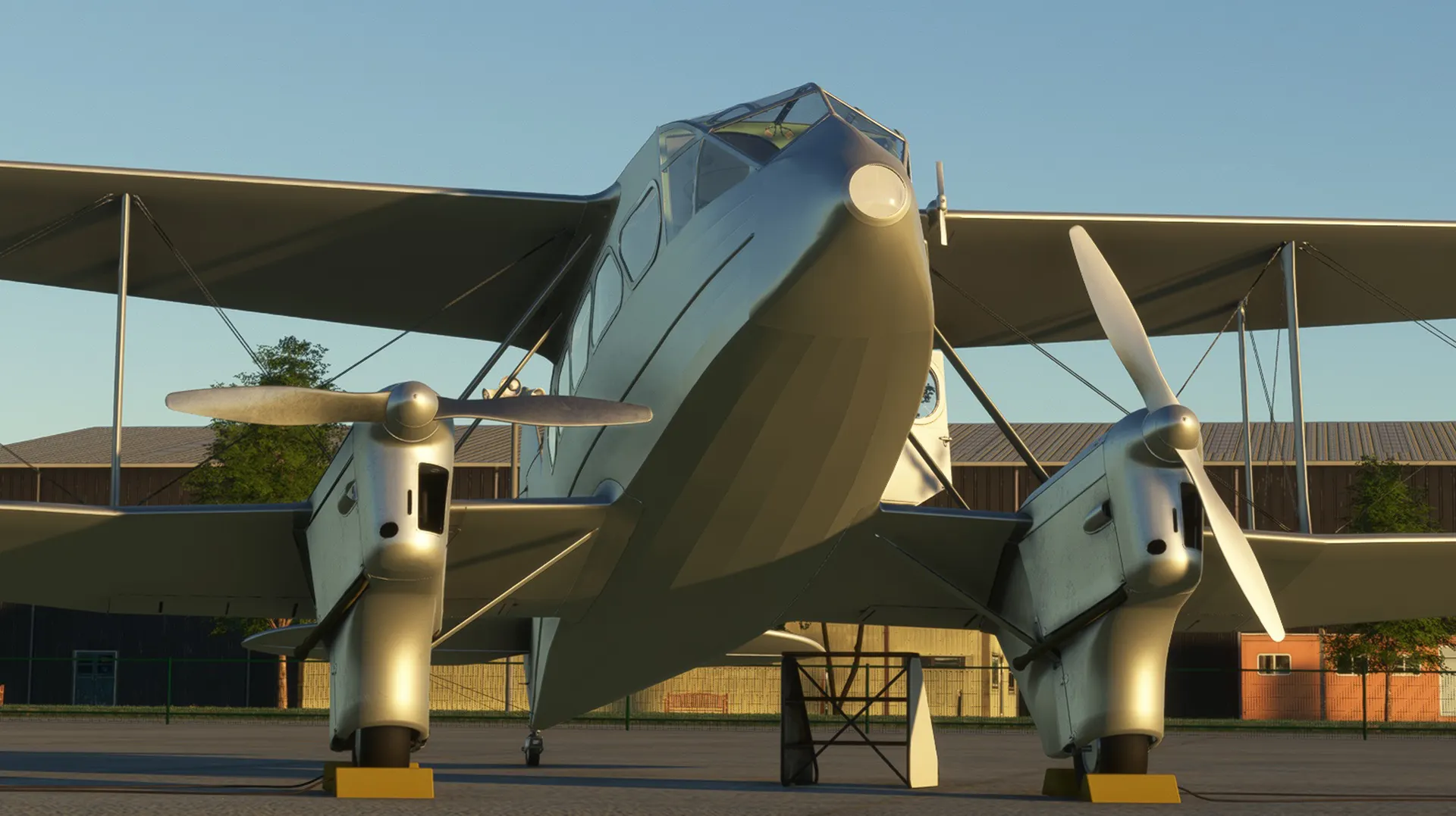 The de Havilland DH.89 Dragon Rapide was a twin-engine short-haul biplane transport introduced in 1934, designed as an elegant evolution of the earlier DH.84 Dragon. Built primarily of wood with a plywood fuselage, fabric-covered wings, and fixed tailwheel undercarriage, the Rapide combined light weight with remarkable durability. It was powered by two 200-hp de Havilland Gipsy Six inline engines, giving a cruising speed around 130 mph (210 km/h), a range of about 570 miles (915 km), and seating for six to eight passengers plus a pilot. The wings featured spruce spars and plywood ribs, with the upper and lower panels joined by interplane struts and bracing wires, while the tail surfaces were cantilever wooden structures.