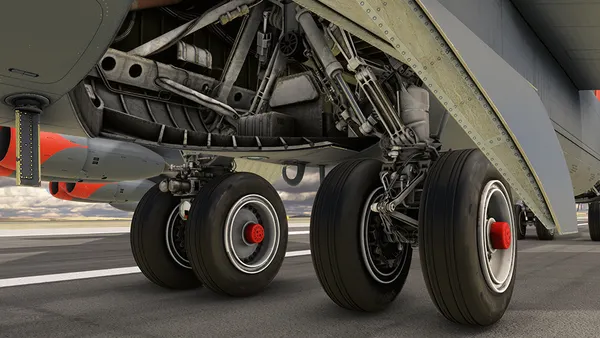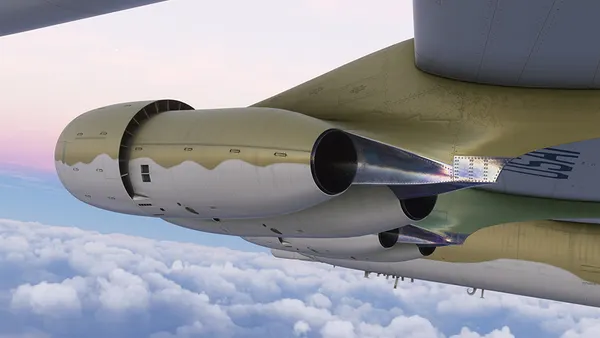 The B-52H is piloted by two and has a total crew of five. It stands 40 feet, 8 inches tall, measures 159 feet, 4 inches in length, and has a wingspan of 185 feet. The wing is highly swept and comprises distinctive, large flaps for take-off and landing. It is powered by eight wing-mounted Pratt & Whitney TF33 turbofan engines that each produce up to 17,000 pounds of thrust. The engines are mounted in four pods, two engines per pod, with each pod mounted beneath the main wing. The B-52H has a maximum range of 10,000 miles (extendable through in-flight refueling), a service ceiling of 50,000 feet above sea level, and a climb rate of 6,270 feet per minute. It cruises at 509 miles per hour and it has a top speed of 650 mph.