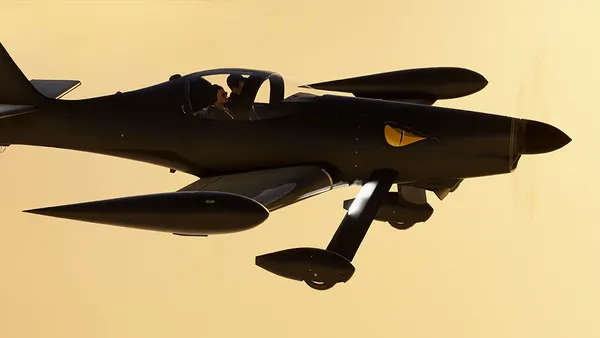 The Impulse 100 Pocket Rocket measures 18 feet, 6 inches in length, stands 5 feet, 1 inch tall, and has a wingspan of 26 feet. The aircraft is powered by a Pratt & Whitney PT6A-28 turboprop engine that produces up to 680 horsepower and turns a 5-blade, constant-speed, composite propeller. It has a maximum cruise speed of 257 miles per hour, a service ceiling of 18,000 feet above sea level, and a maximum climb rate of 6,200 feet per minute.