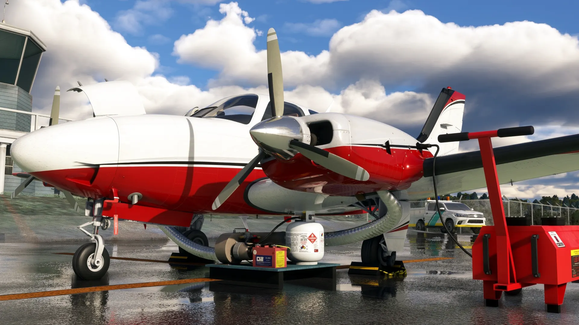 The Baron Professional features a flight model with performance to match the real-world aircraft based on real Baron owner feedback and in-flight data. Engine and aerodynamic performance should be within 2% of POH values, though no two engines are ever the same. The flight model uses the most up to date features available in MSFS 2020 and MSFS 2024, such as the new voxel CFD aerodynamics, CFD propeller, adverse yaw and stall parameters, and flexible tyre physics. Engine damage and fouling produce a rough running engine and decreased performance.