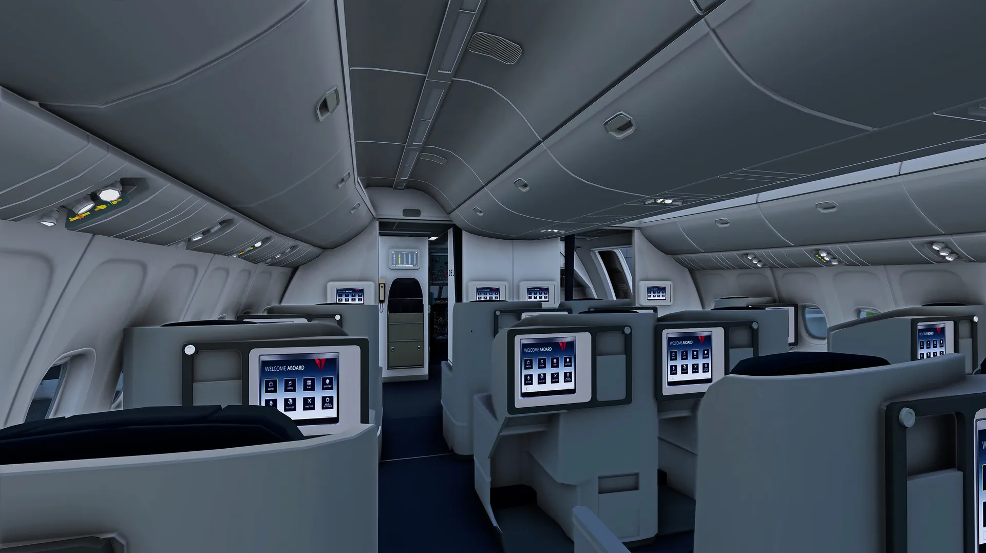 · Cabin model with Business class, premium economy, economy seats and galleys.