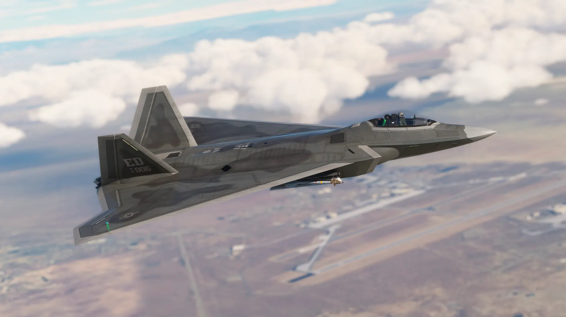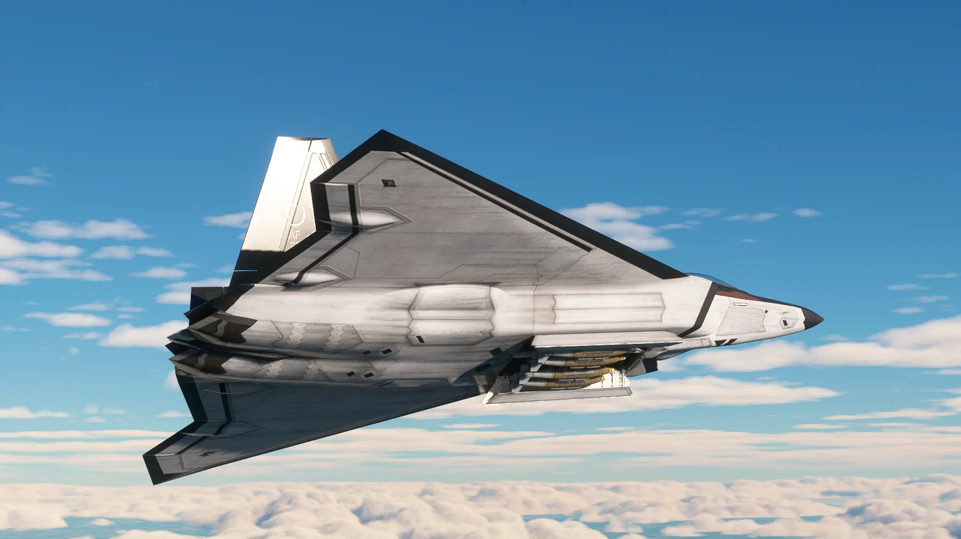 It's time to fly the FB-22 Strike Raptor in Microsoft Flight Simulator! Discover what could have been an iconic stealth fighter-bomber operated by the United States of America, which could have entered service in the 2010s. The aircraft is based on a study model, and its real-life version never went beyond the design phase. The aircraft you will fly is based on the FB-22-2 variant, with a delta wing and a single-pilot seat. There are 15 liveries available, including the celebrated VX-4 Evaluators, as well as SEA camouflage versions and the 66th Aggressor Squadron's multicolor livery. The flight model is intuitive and easy to use, and the cockpit is highly detailed, with its own customized flight systems allowing GPU interaction, Cold & Dark start, and bomb bay opening. You will have AIM-9 and AIM-120 missiles, as well as two types of JDAMs, all aesthetically pleasing, to carry during your flights. Enjoy!