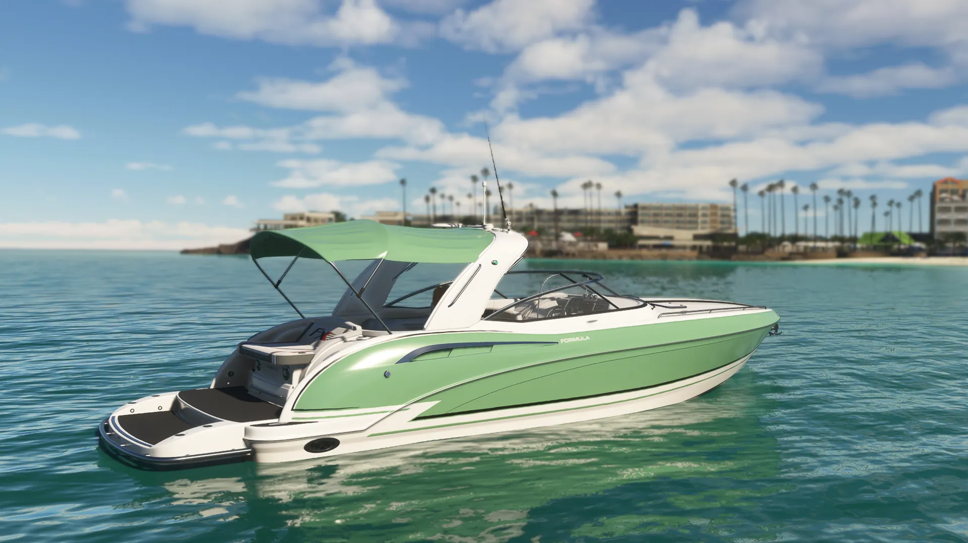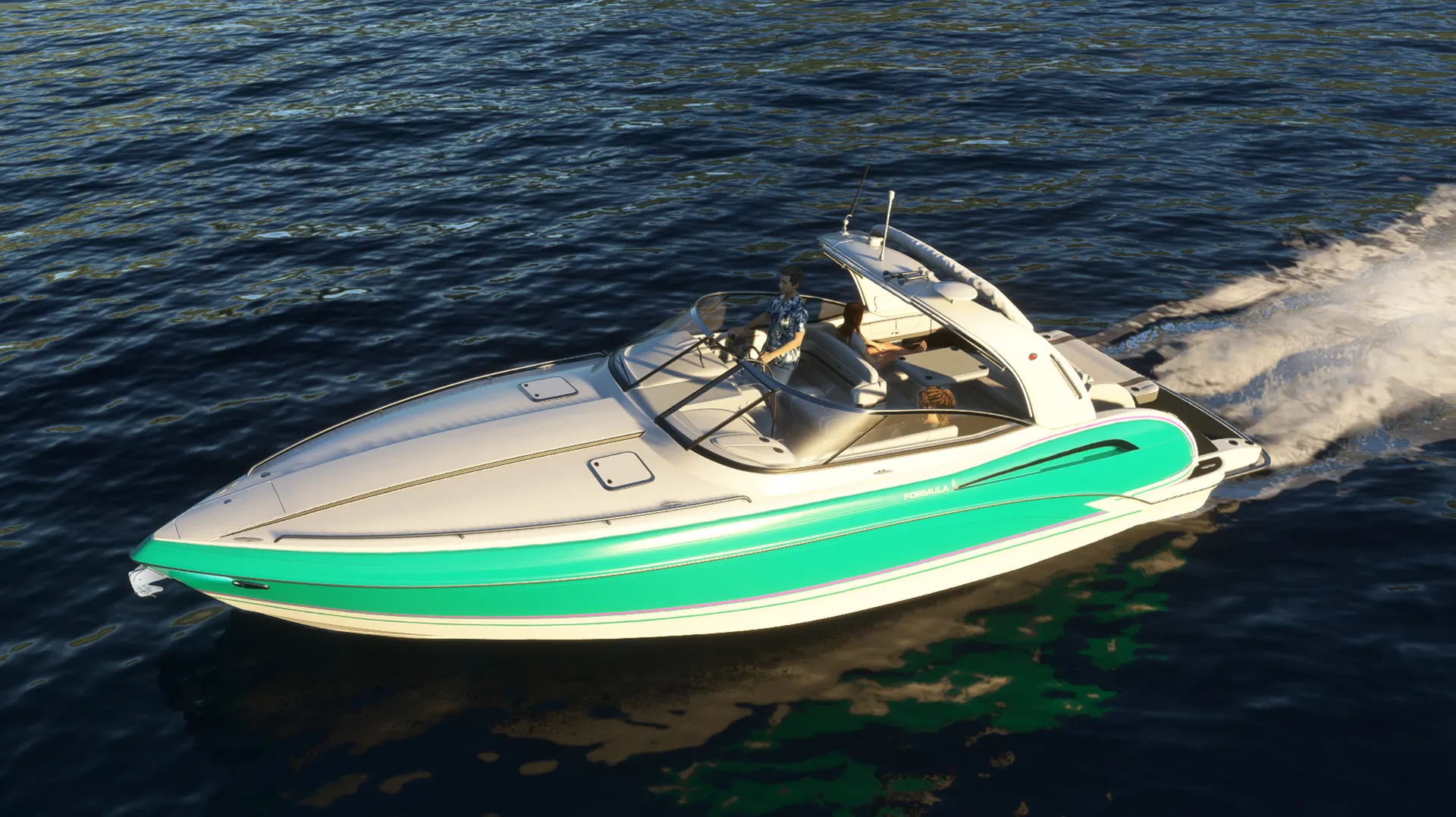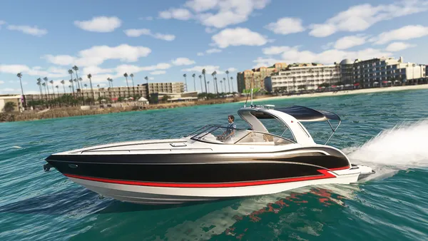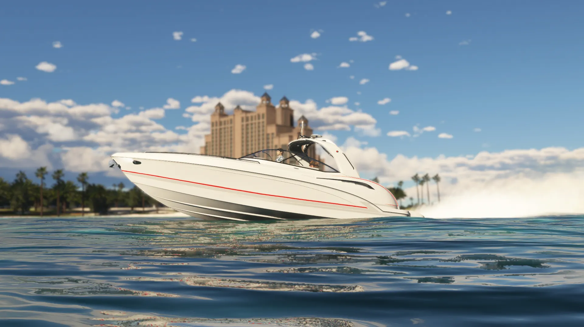 Meet the Speedboat 35ft, a leisure boat that combines luxury, rich detail, agility, and fun while piloting on the water! You'll have 17 liveries at your disposal, divided into various color tones and design schemes, in a boat equipped with authentic real-world nautical systems. A new navigation system allows Autopilot Mode to manage speed in knots, HDG heading, and automatic navigation using GPS NAV routes. Travel long distances by easily clicking on the panel to accelerate the simulation rate by 2x or 4x while your boat cruises towards incredible destinations! The panel has several clickable buttons allowing you to open windows, turn lights on or off, and other functions. Explore!