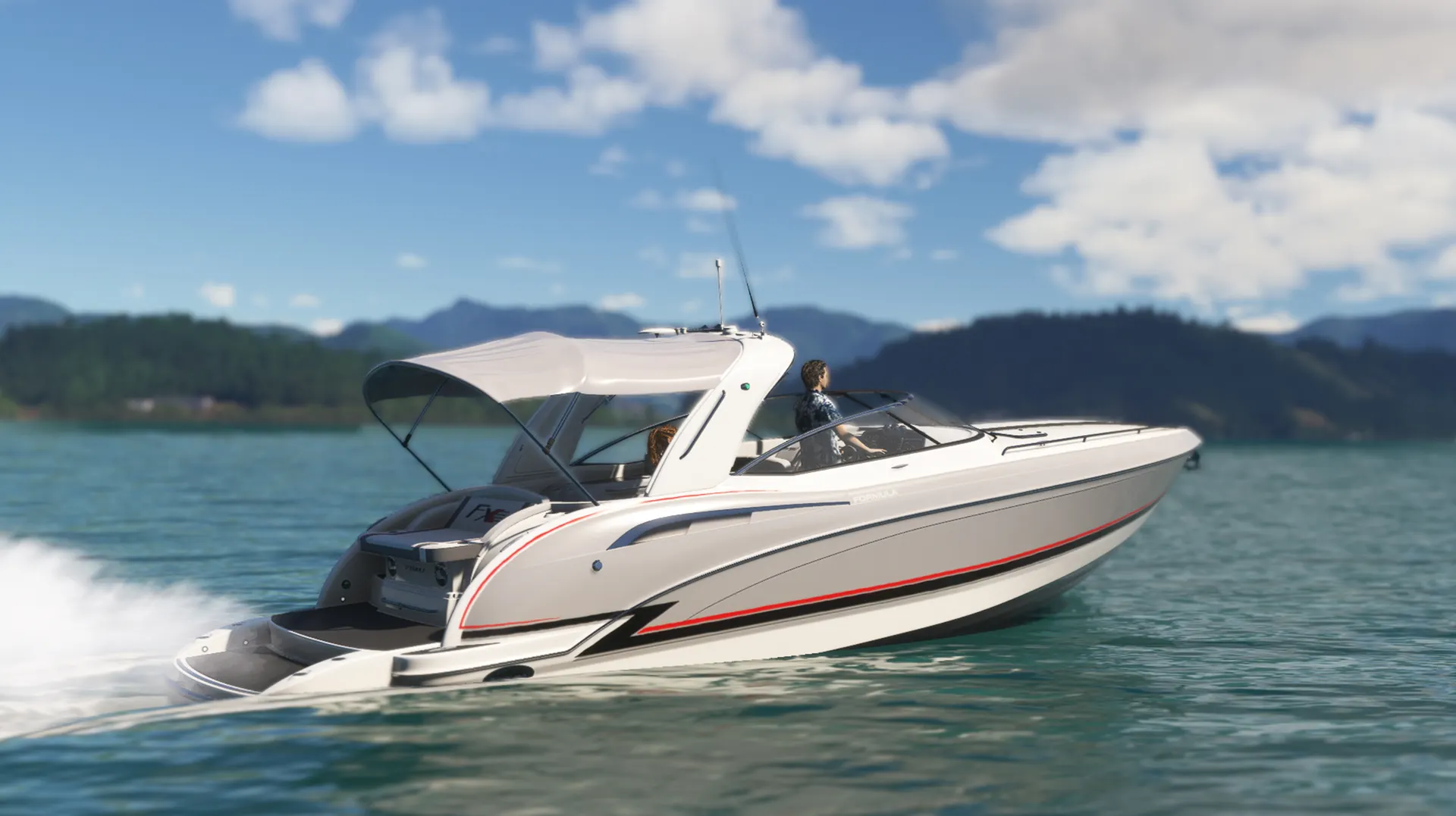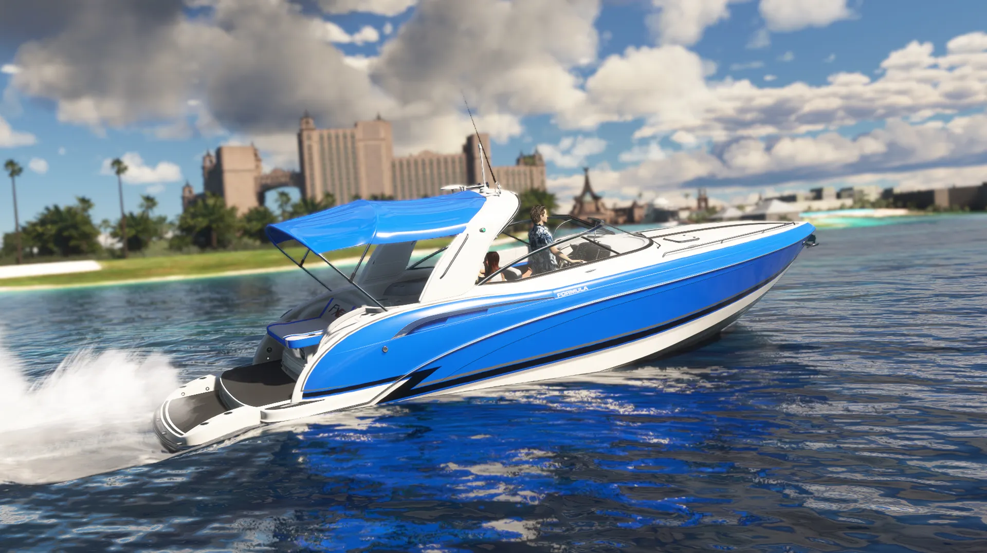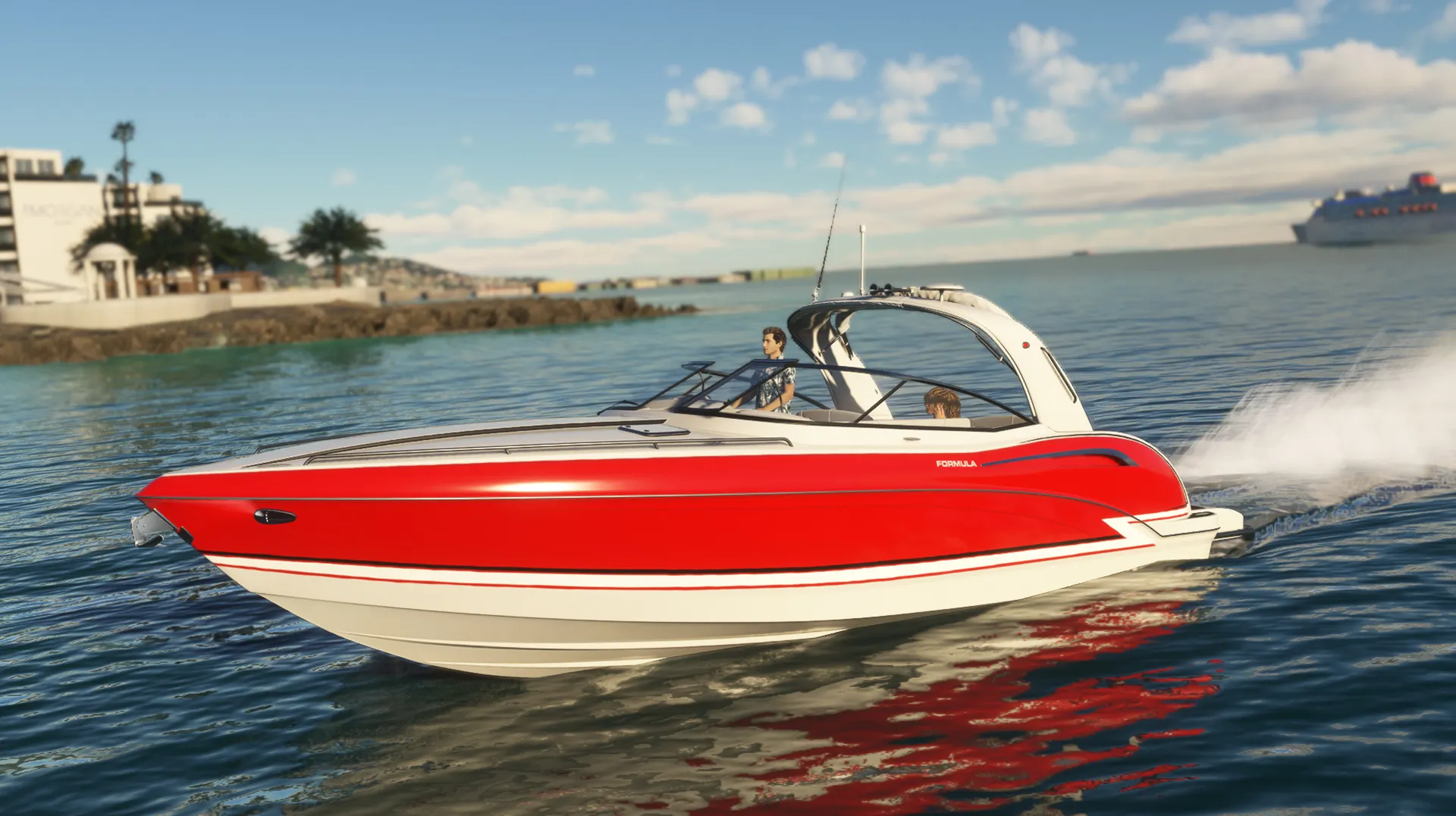 Meet the Speedboat 35ft, a leisure boat that combines luxury, rich detail, agility, and fun while piloting on the water! You'll have 17 liveries at your disposal, divided into various color tones and design schemes, in a boat equipped with authentic real-world nautical systems. A new navigation system allows Autopilot Mode to manage speed in knots, HDG heading, and automatic navigation using GPS NAV routes. Travel long distances by easily clicking on the panel to accelerate the simulation rate by 2x or 4x while your boat cruises towards incredible destinations! The panel has several clickable buttons allowing you to open windows, turn lights on or off, and other functions. Explore!