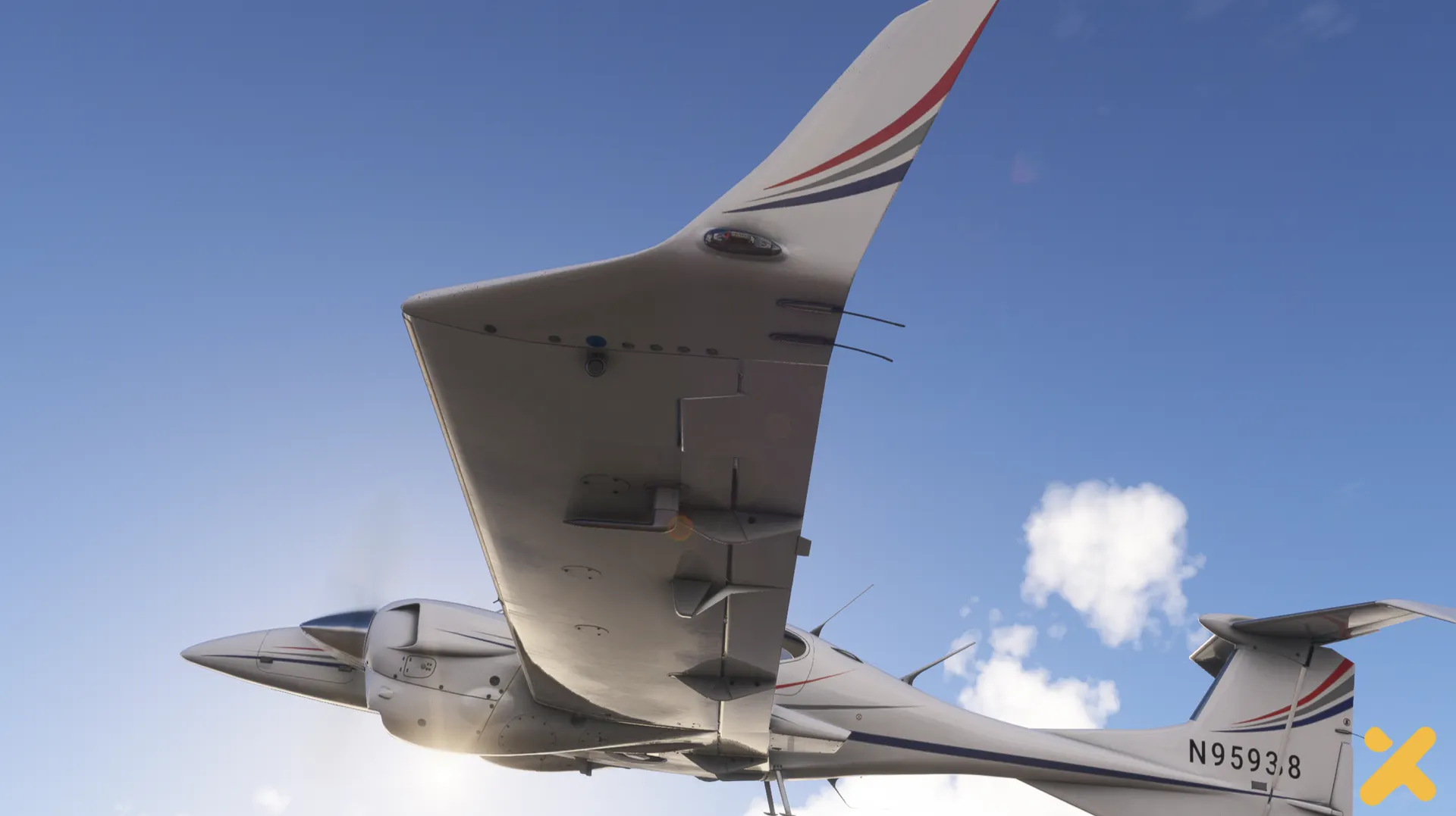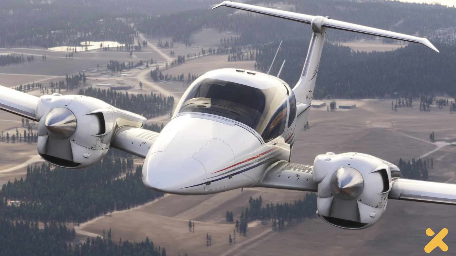The DA42-VI measures 28 feet, 1 inch in length, stands 8 feet, 2 inches tall, and has a wingspan of 44 feet, 5 inches. It is powered by two high-efficiency, liquid-cooled, 4-cylinder aircraft diesel piston engines. Each powerplant produces up to 168 horsepower and turns a 3-blade, constant-speed propeller.
