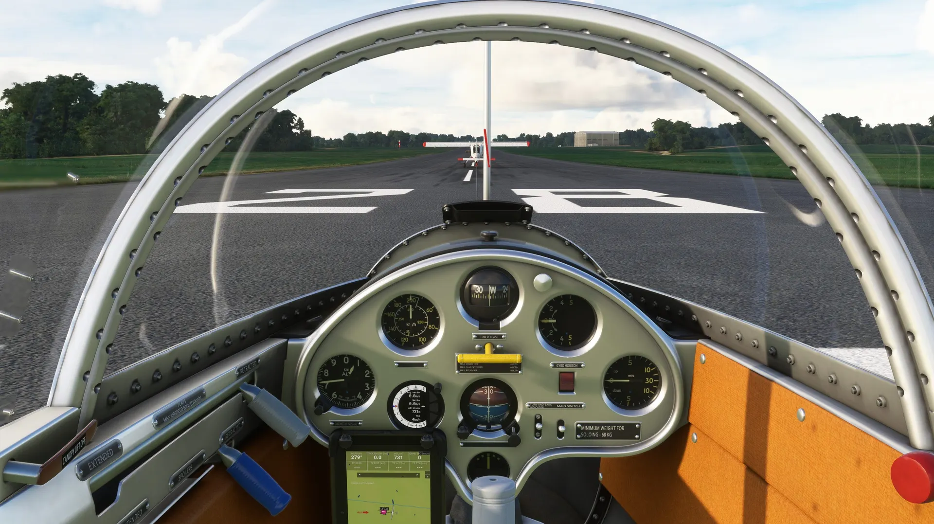 To make your flight experience even more realistic, bracing removal is available if you choose apron as flight departure point,required triggers added into checklist. Once unbraced, manpowered towing will happen, use joystick and rudder pedals to move your glider to the runway, then toggle tow handle to request towplane.