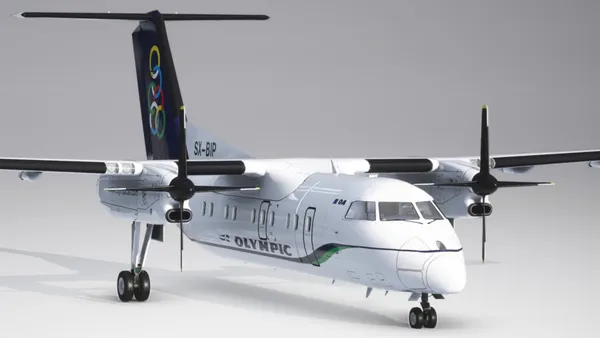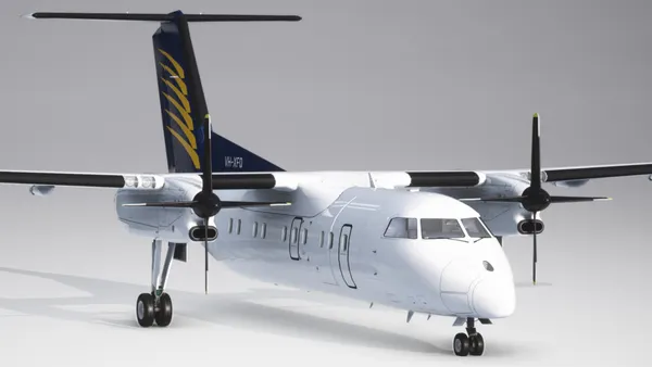 The De Havilland Dash 8 has proven to be a popular player in the regional turboprop airliner market. De Havilland Canada began development of the Dash 8 in the late 1970s in response to what it saw as a considerable market demand for a new generation 30 to 40 seat commuter airliner. The first flight of the first of two preproduction aircraft was on June 20 1983, while Canadian certification was awarded on September 28 1984. The first customer delivery was to NorOntair of Canada on October 23 1984. Like the Dash 7, the Dash 8 features a high-mounted wing and Tail, and has an advanced flight control system and considerable full-length trailing edge flaps. Initial Dash 8 production was of the Series 100, which was followed by the Series 100A in 1990. The 100A introduced a revised interior with extra headroom and PW120A turboprops. The Series 100B was offered from 1992 with more powerful PW121s for better climb and airfield performance.