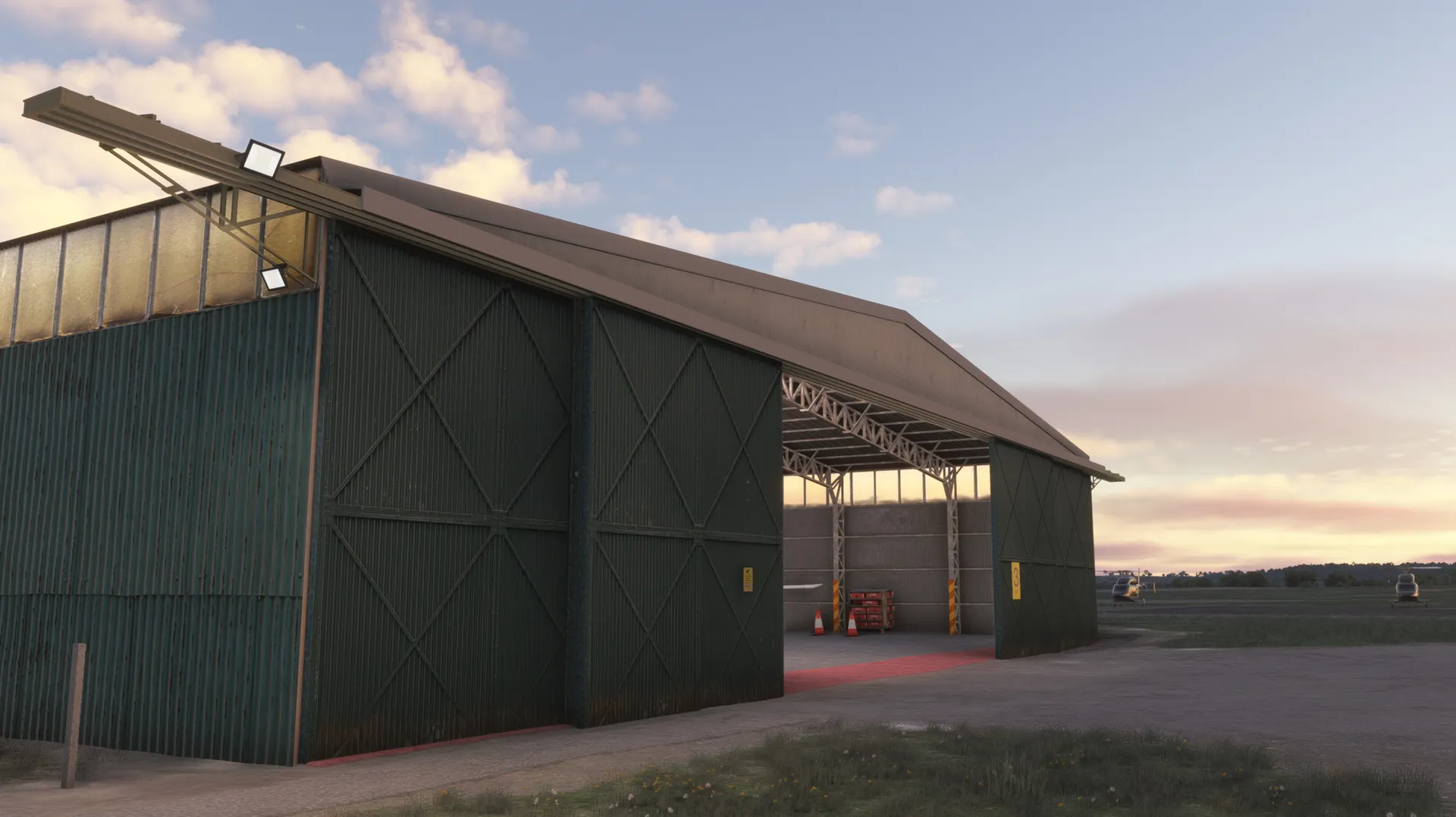 - Detailed control room and hangar interiors with animated hangar doors which close at night (open manually with Taxi Lights)