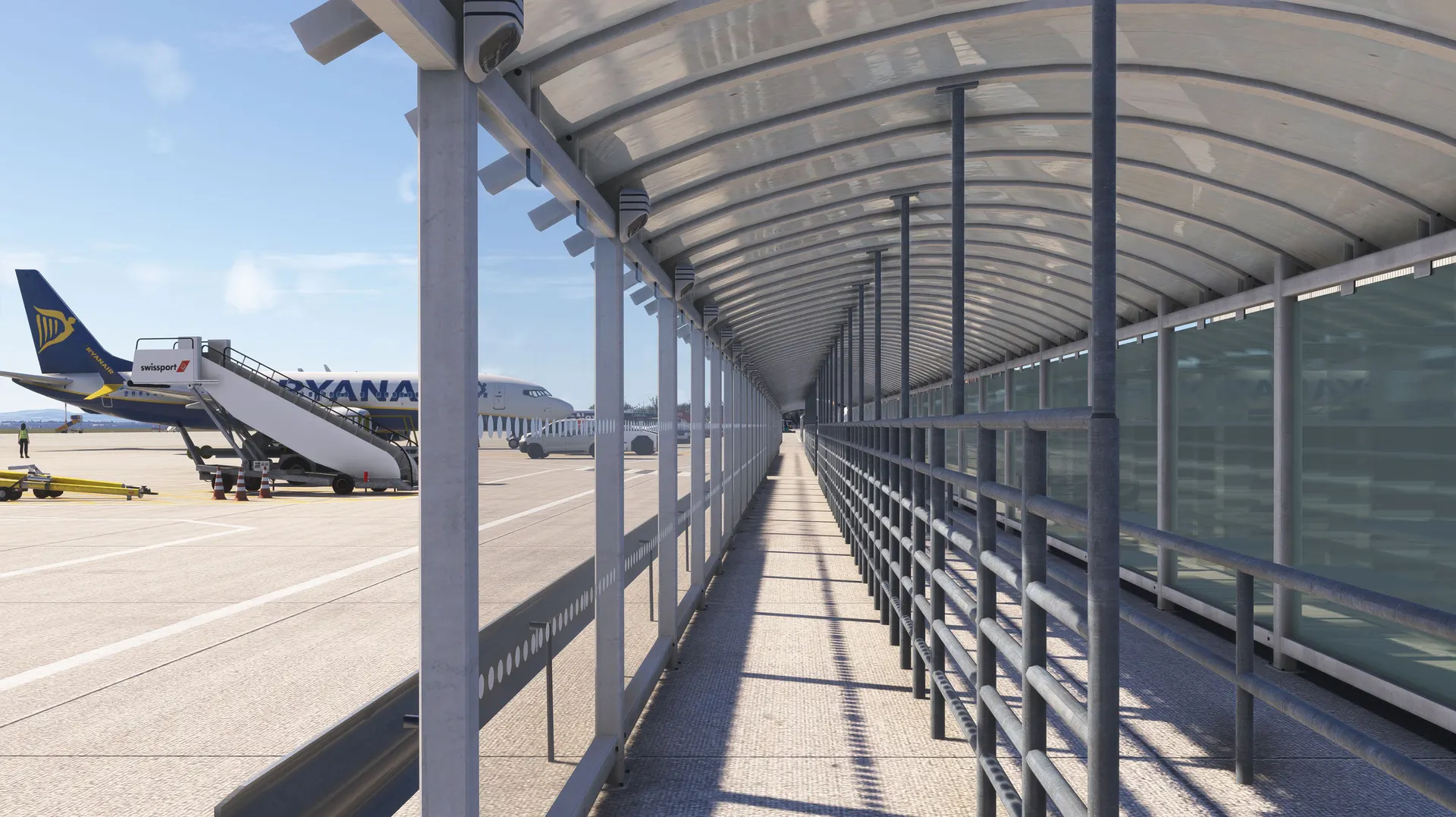 - Detailed airport objects and vehicles created using MSFS PBR materials