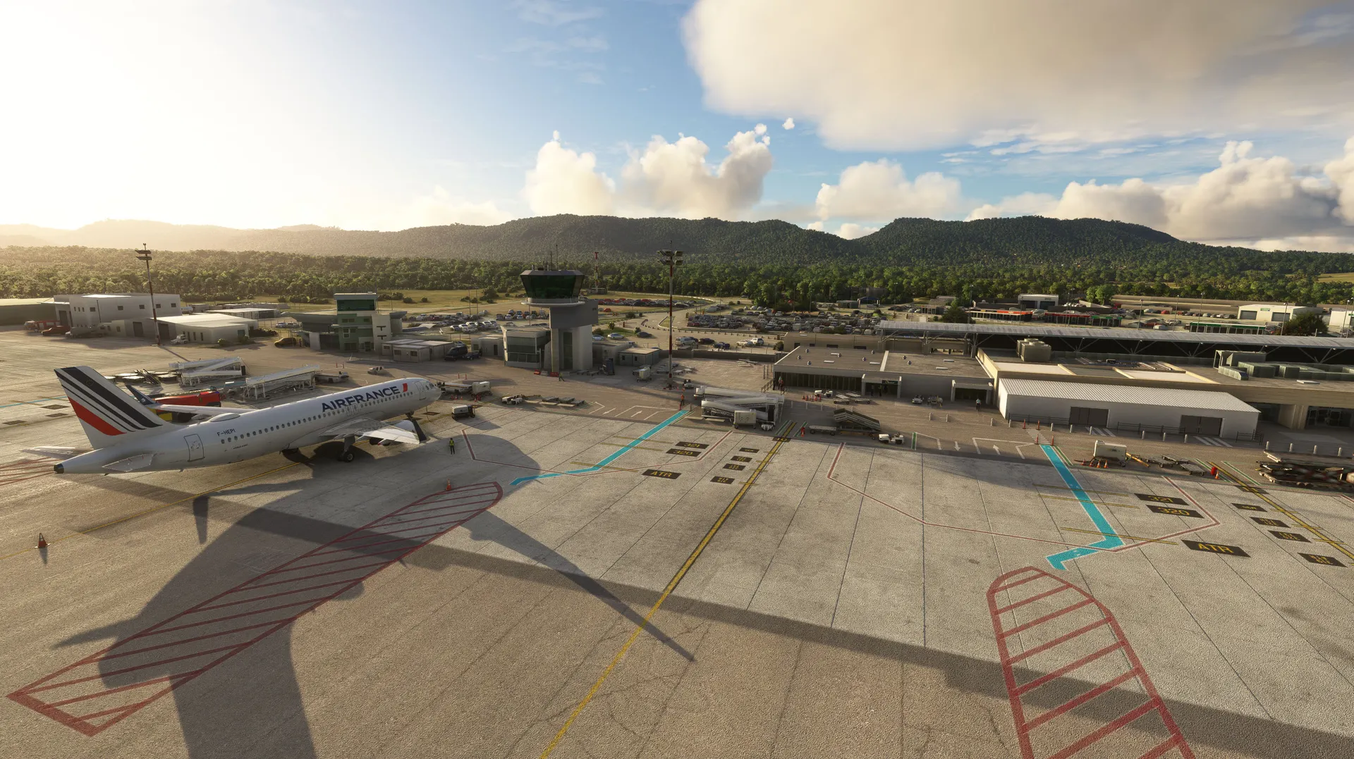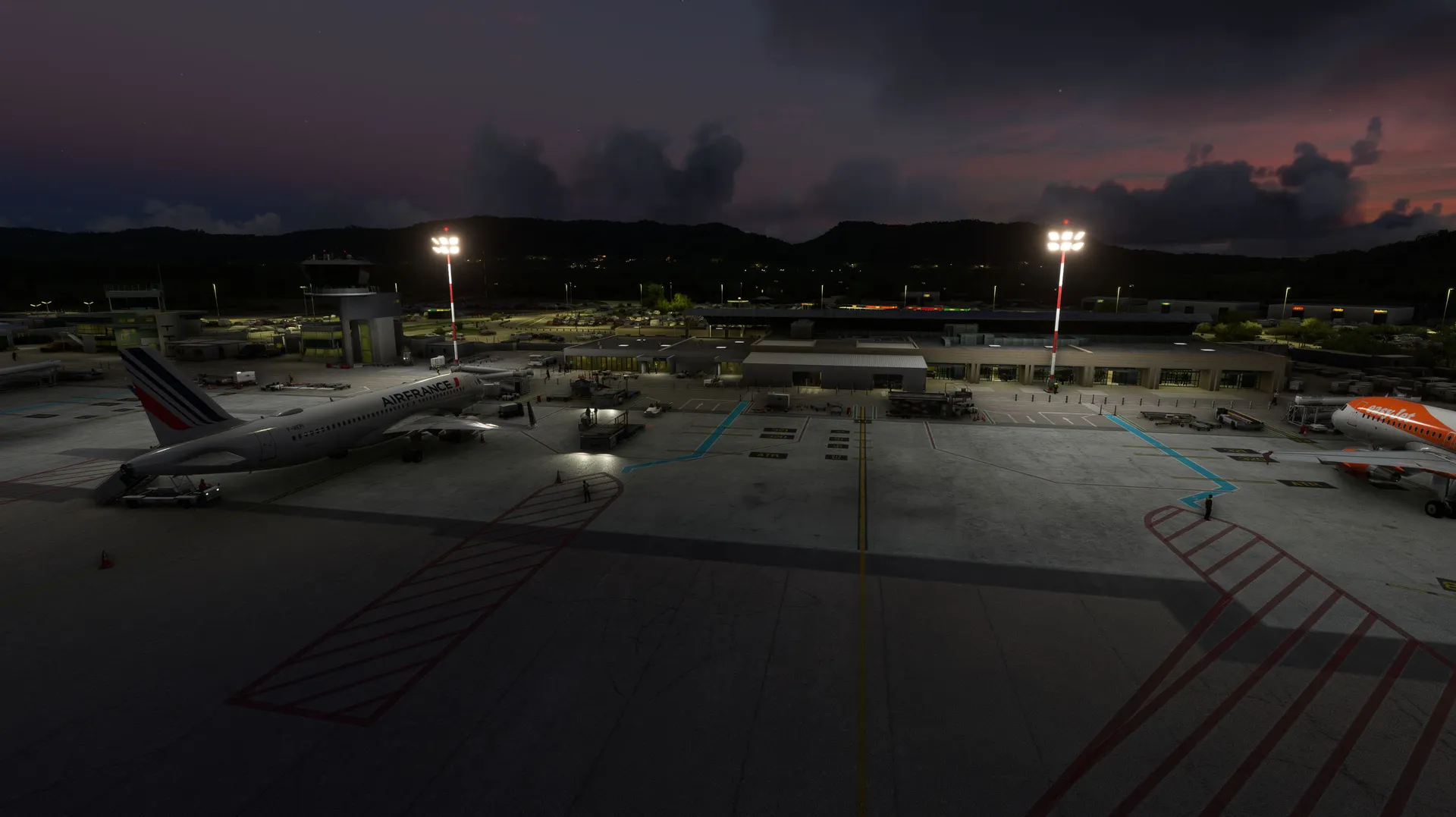 LFKF – Figari Sud Corse is an airport add-on for Microsoft® Flight Simulator® from the Airport FRANCE Pack #5 which models Figari Sud Corse airport in extremely detailed fashion, including airport buildings, textures and ground markings as well as its night lights and many objects on the platform.