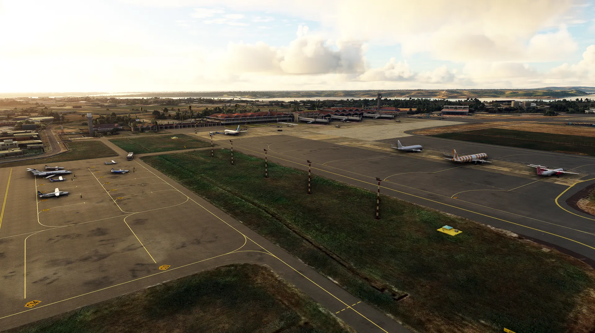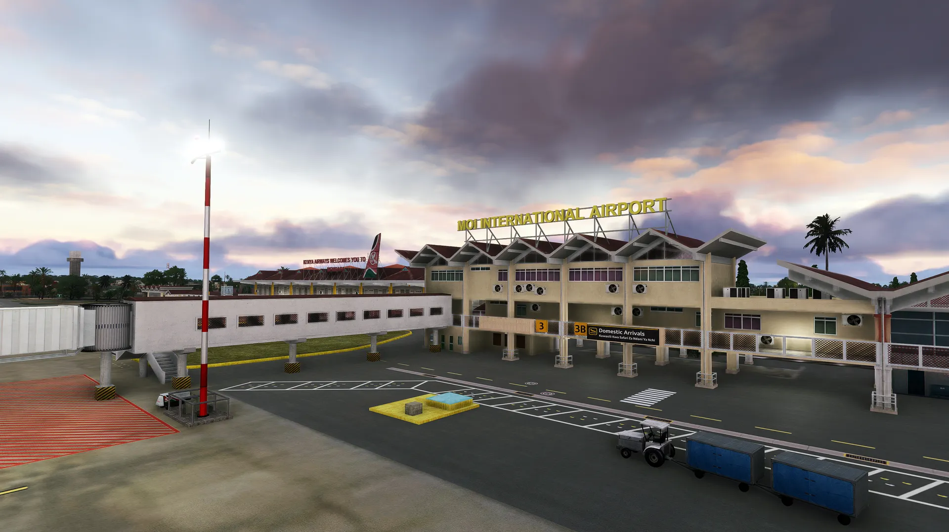 Moi International Airport (HKMO) serves the coastal city of Mombasa and is Kenya's main gateway to the Indian Ocean. Generally good weather conditions make operations straightforward, while heat, humidity, and sea breezes can add subtle challenges on approach and departure. From Mombasa, the Seychelles can be reached in around 3 hours, Mayotte in about 2.5 hours, and Réunion in roughly 4 hours of flight time. That means HKMO is not only the perfect complement to our Nairobi scenery and the upcoming Zanzibar Addon, but also an ideal starting point for island-hopping flights across the Indian Ocean.