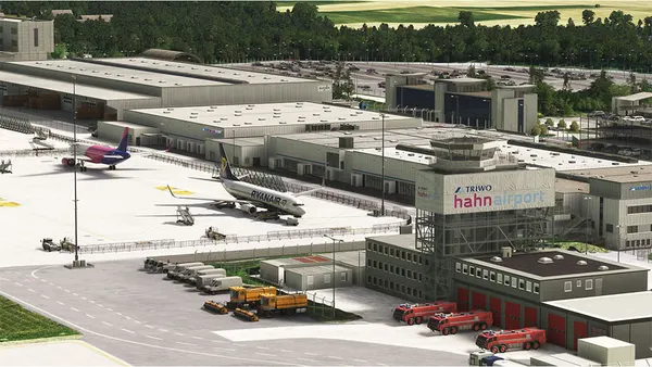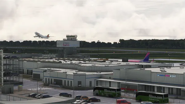 This scenery brings Hahn to life with high-quality modeling, realistic textures, and detailed surroundings — including the iconic control tower, terminal interiors, cargo facilities, and apron areas. Sloped terrain and accurate ground layouts ensure an authentic experience both in the cockpit and from the ground.