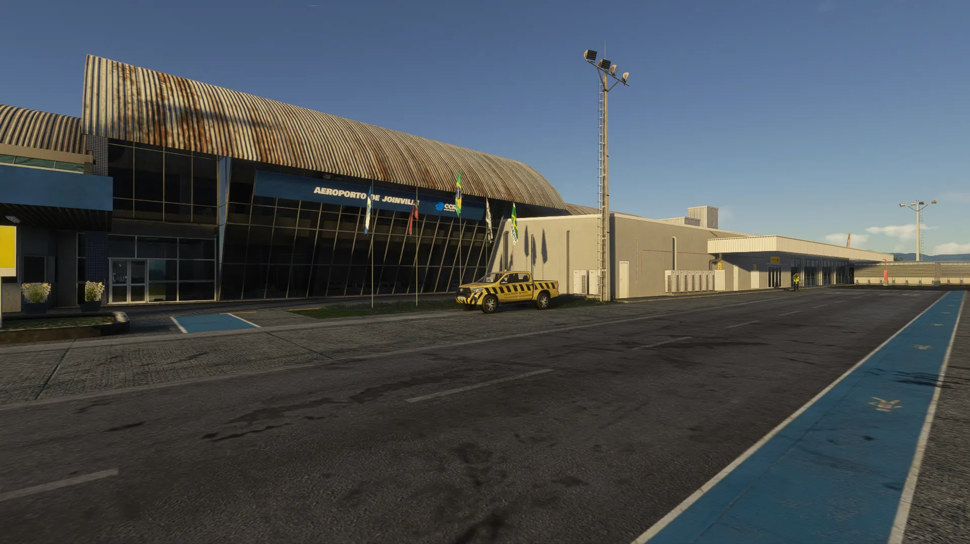 Joinville Airport - Lauro Carneiro de Loyola is a public civil aerodrome located in the Brazilian municipality of Joinville , Santa Catarina , operated by CCR Aeroportos . It is located twelve kilometers from the city center. The current passenger terminal, opened on March 8, 2004, has 4,000 m² and capacity to serve up to 1.3 million passengers per year and has an administrative sector and control tower. Its name is in honor of a local businessman and politician, Lauro Carneiro de Loyola . Joinville Airport has previously received regular flights from cities such as Porto Alegre , Criciúma , Navegantes , and Rio de Janeiro . However, the airport currently only operates to three destinations, all in the vicinity of the city of São Paulo .