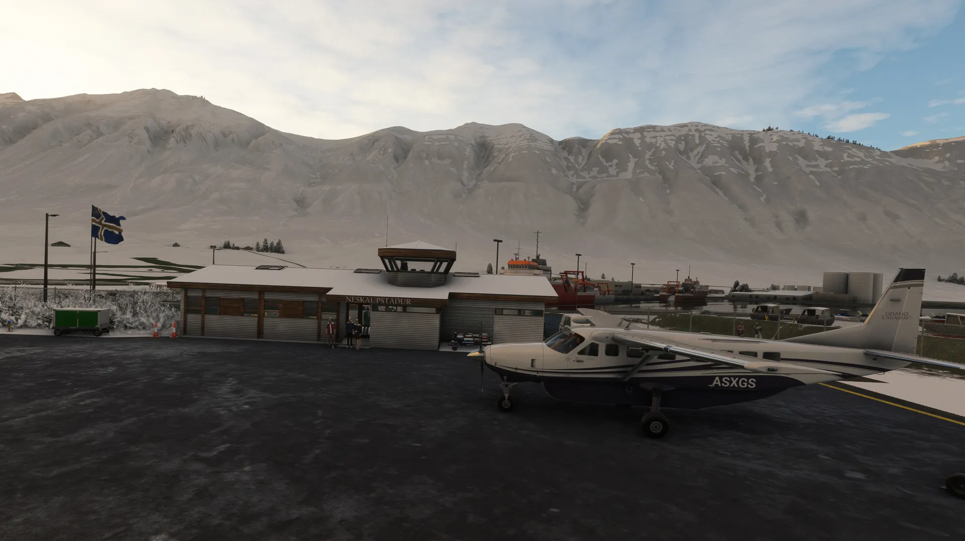 Norðfjörður Airport (BINF) is a small civil airport serving Neskaupstaður, Iceland, with a single short runway, low elevation, and an NDB (NF) for navigation
