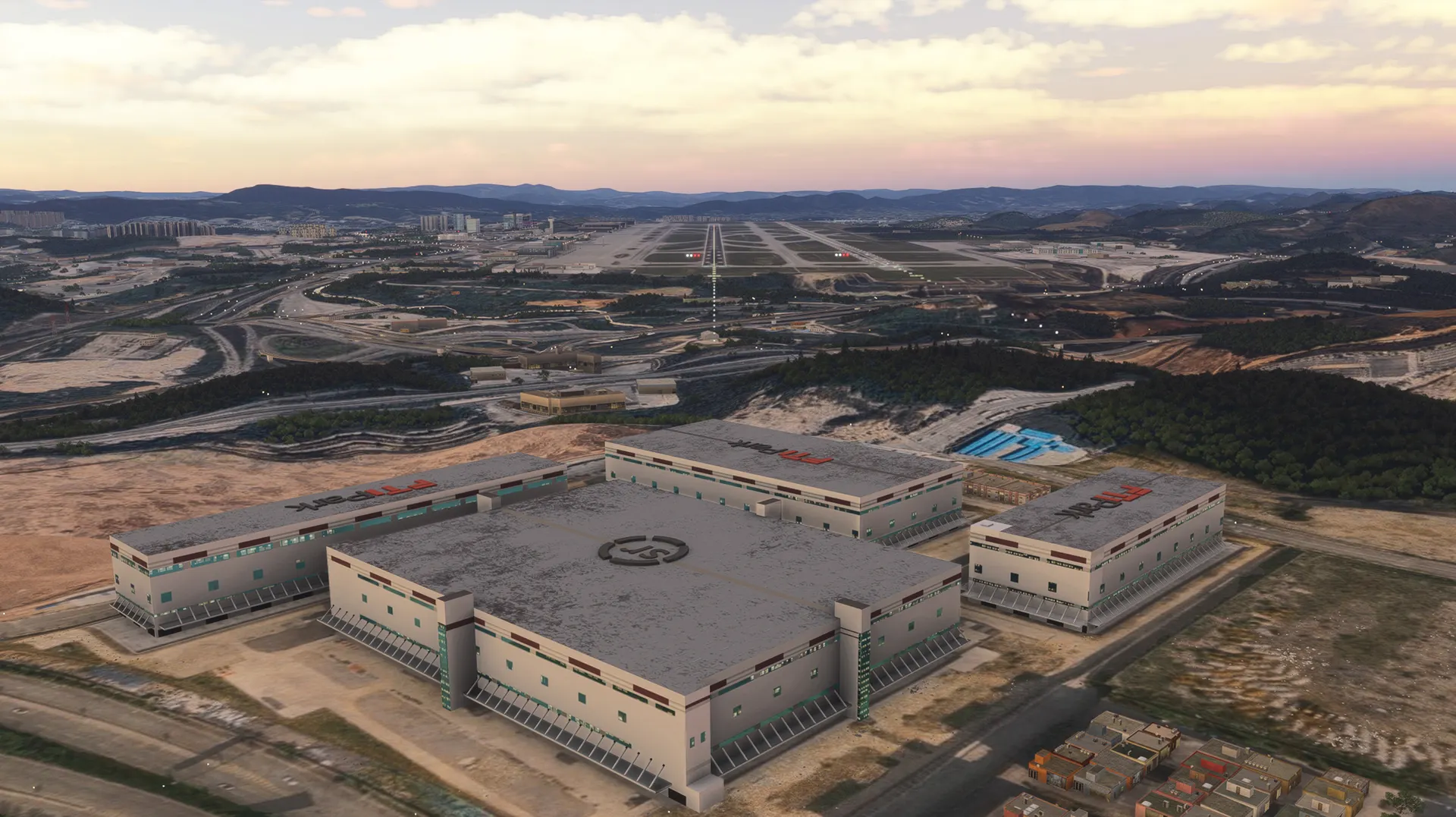 - Custom buildings at the airport surrounding