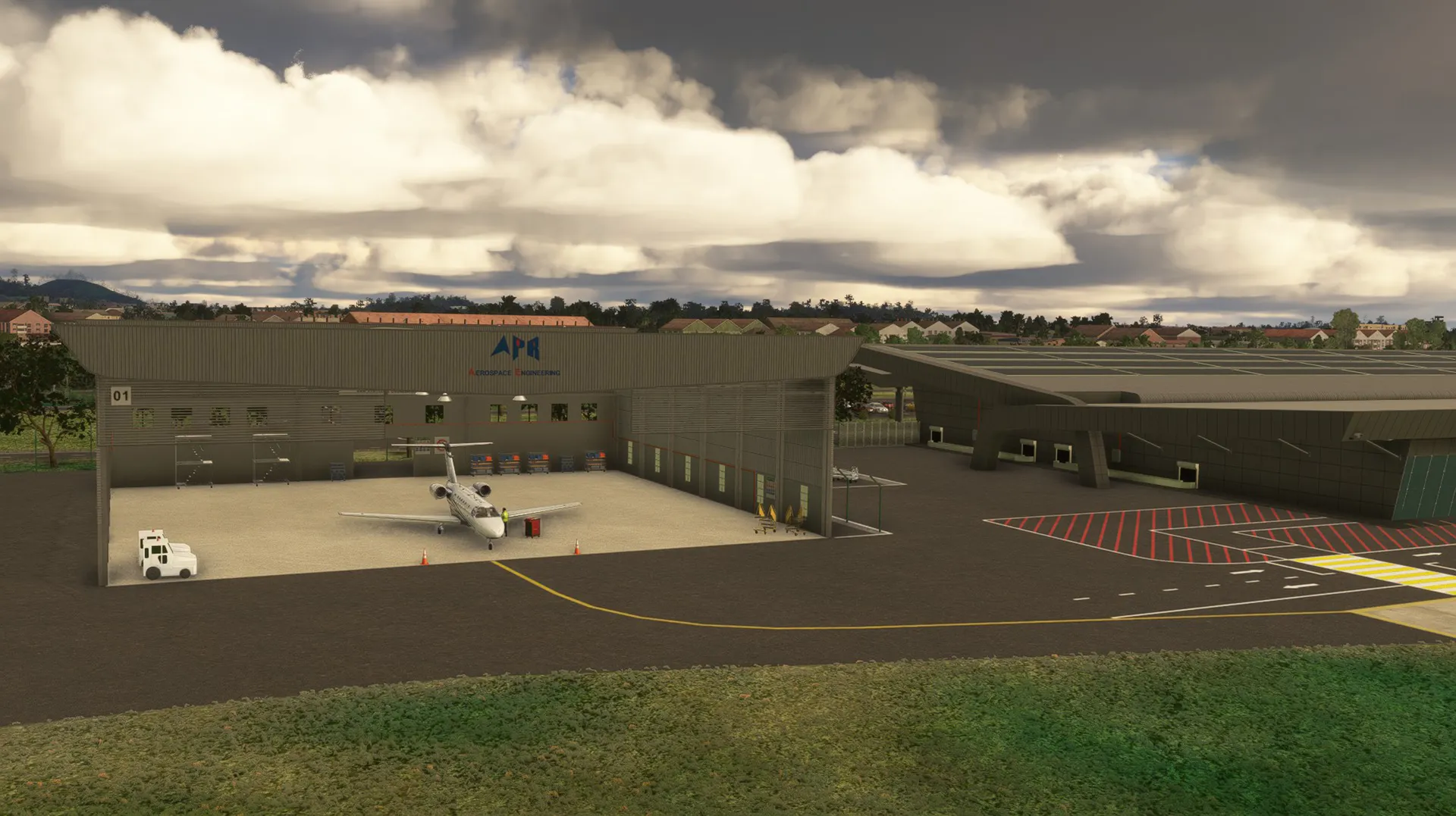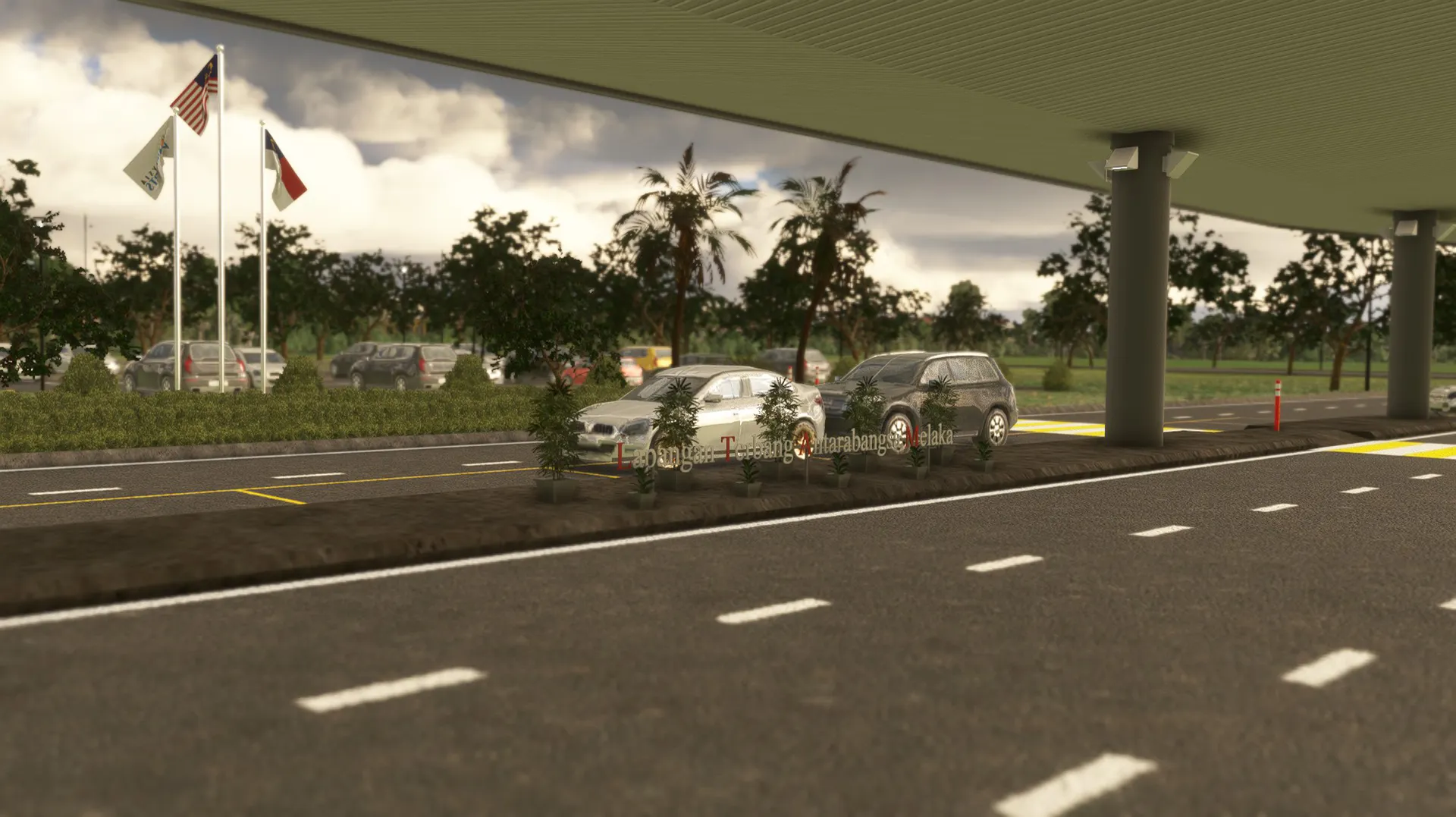 Accurate custom terraforming and slope modeling reflecting the latest satellite data and airport layout Fully custom-modeled terminal, control tower, hangars, and surrounding buildings with high-resolution PBR textures for unparalleled realism Hand-placed, dynamic taxiway and runway lighting system - including centerline lights, edge lights, runway end/threshold lights, PAPI, and approach systems that adapt intelligently to day/night cycles Complete day/night illumination throughout the airport environment for immersive dawn-to-dusk operations Hand-crafted ground markings, taxiway lines, and high-resolution surface textures with realistic weathering, dirt, and wear effects Realistic static objects and clutter tailored to the airport's current appearance Current airline operations included - featuring Scoot (with accurate gate assignments and liveries for their Singapore-Melaka service) and support for AI traffic Optimized for excellent performance even on mid-range systems Compatible with MSFS World Updates and popular AI traffic packages