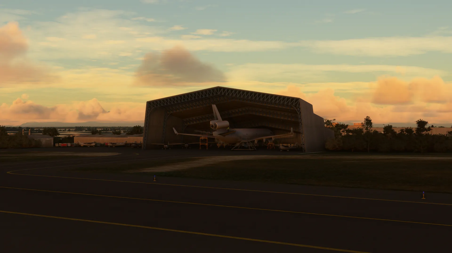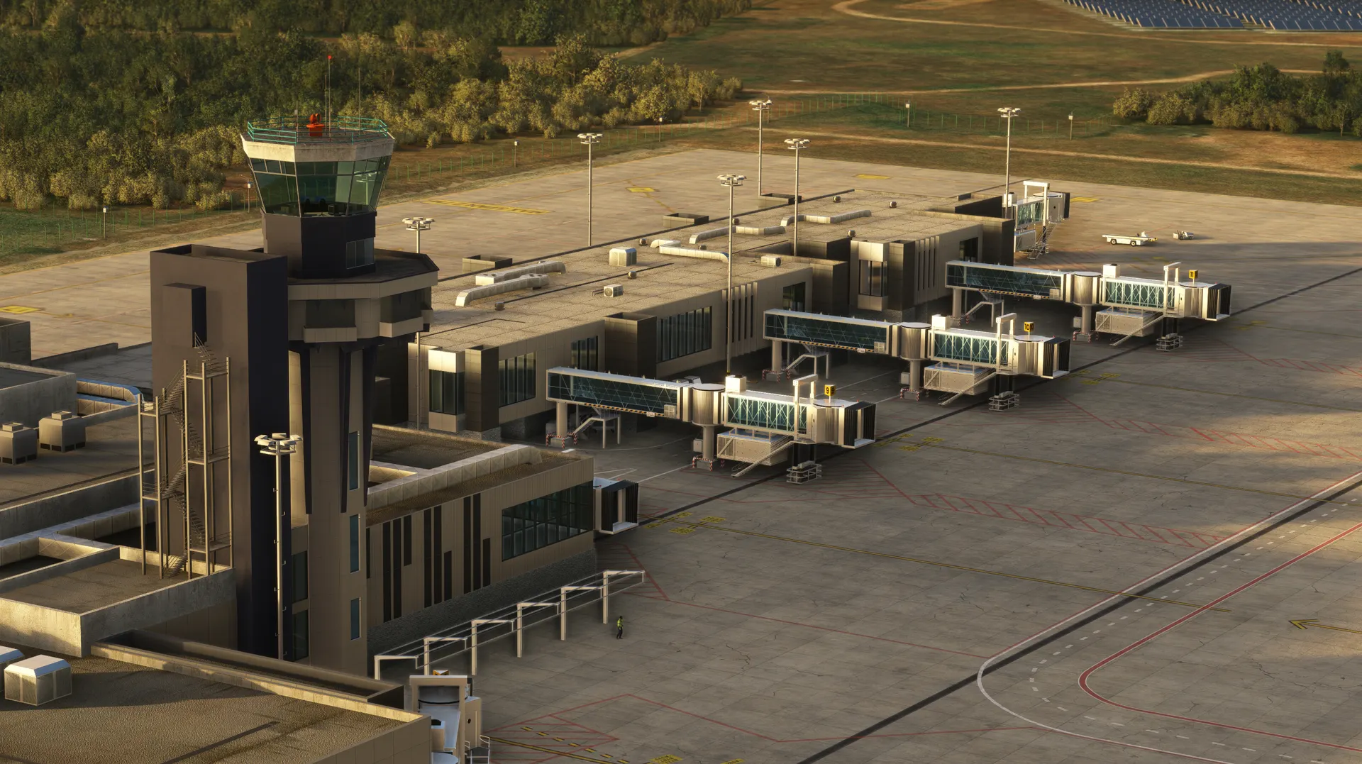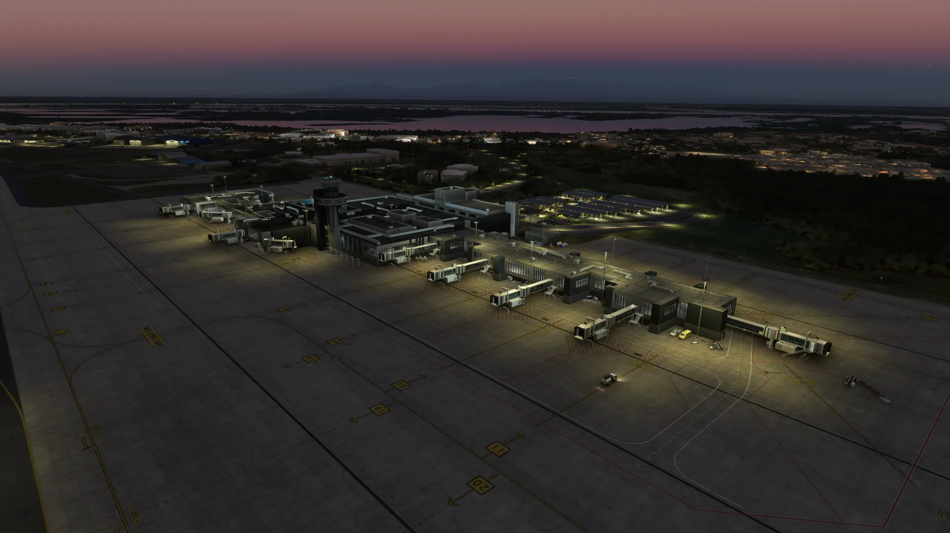 Custom ground markings, taxiways, and runways, matching real-world layouts.