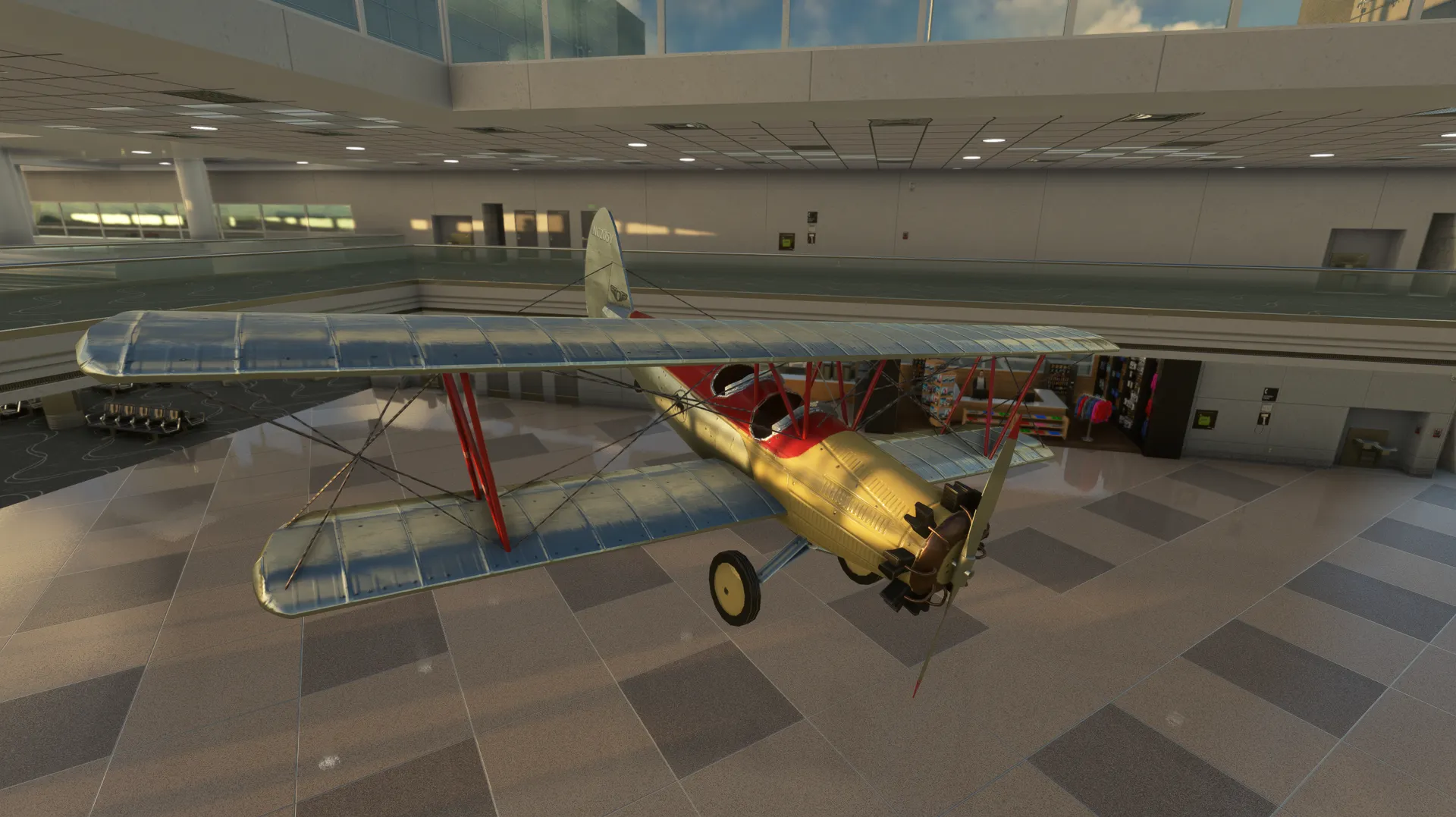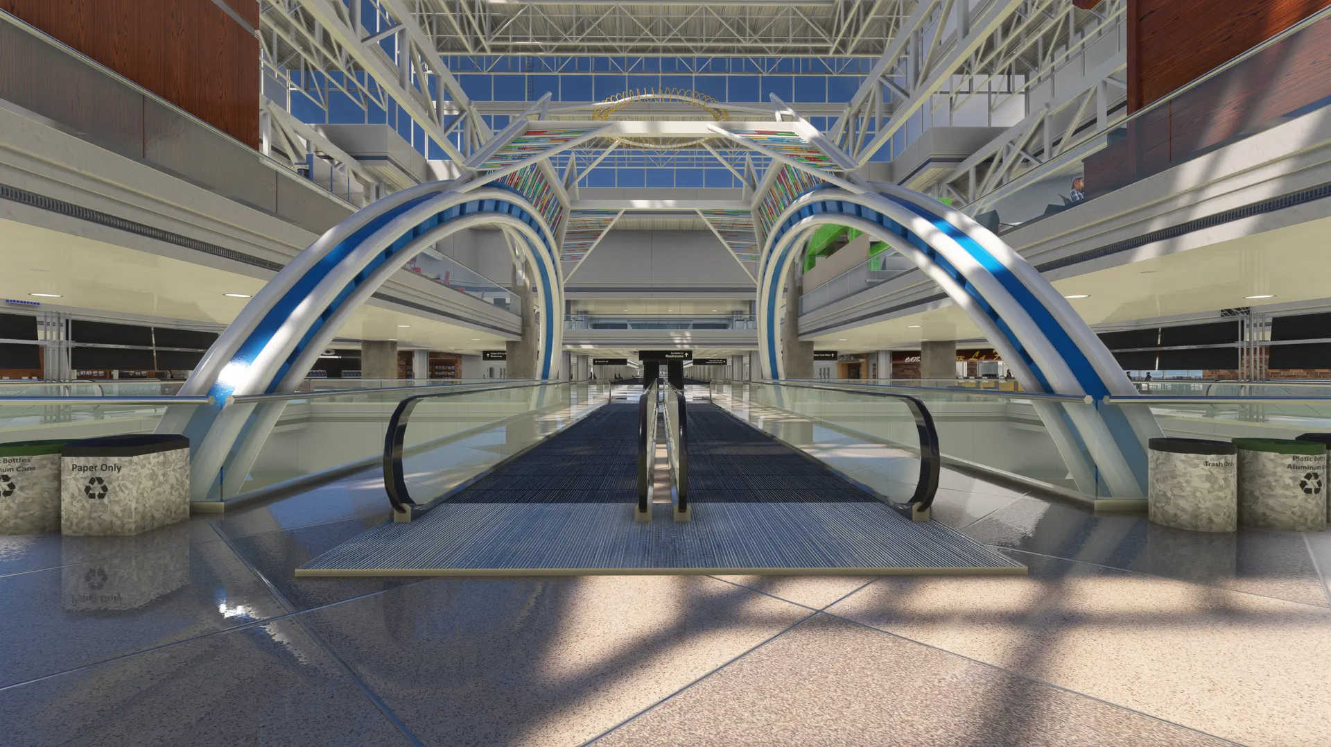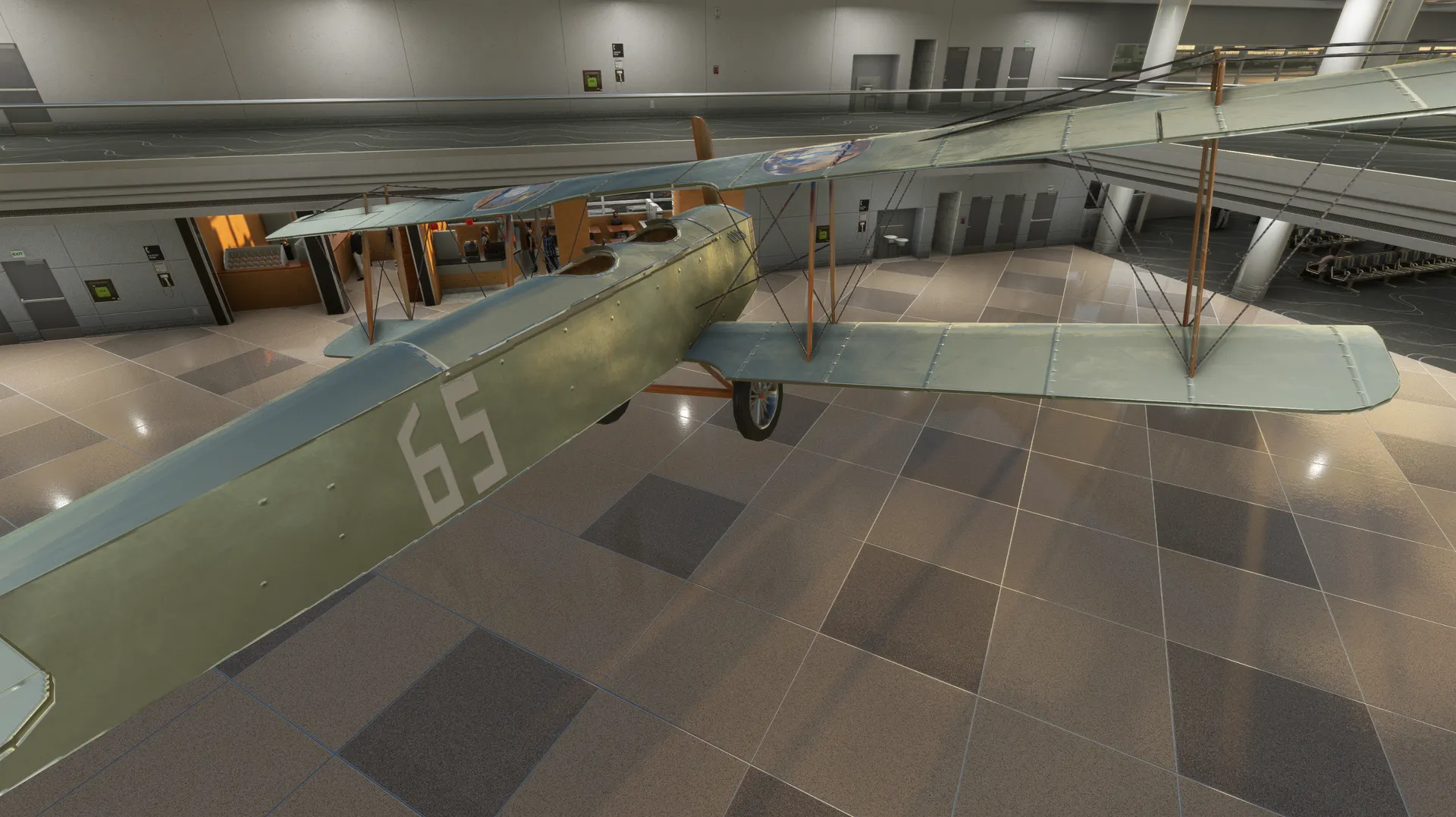 - All terminal concourses have full 3d interiors in passenger-accessible areas, with numerous POIs (such as aircraft displays hanging from the ceiling).