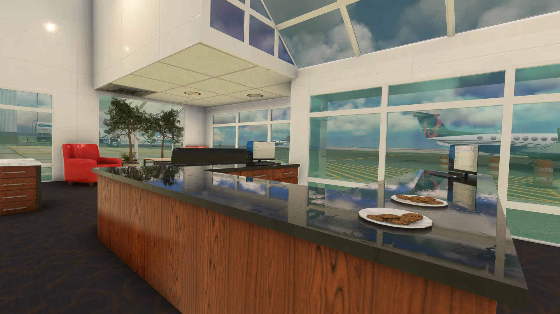 - Lite interiors for Jeppesen terminal, GA buildings, and control towers.