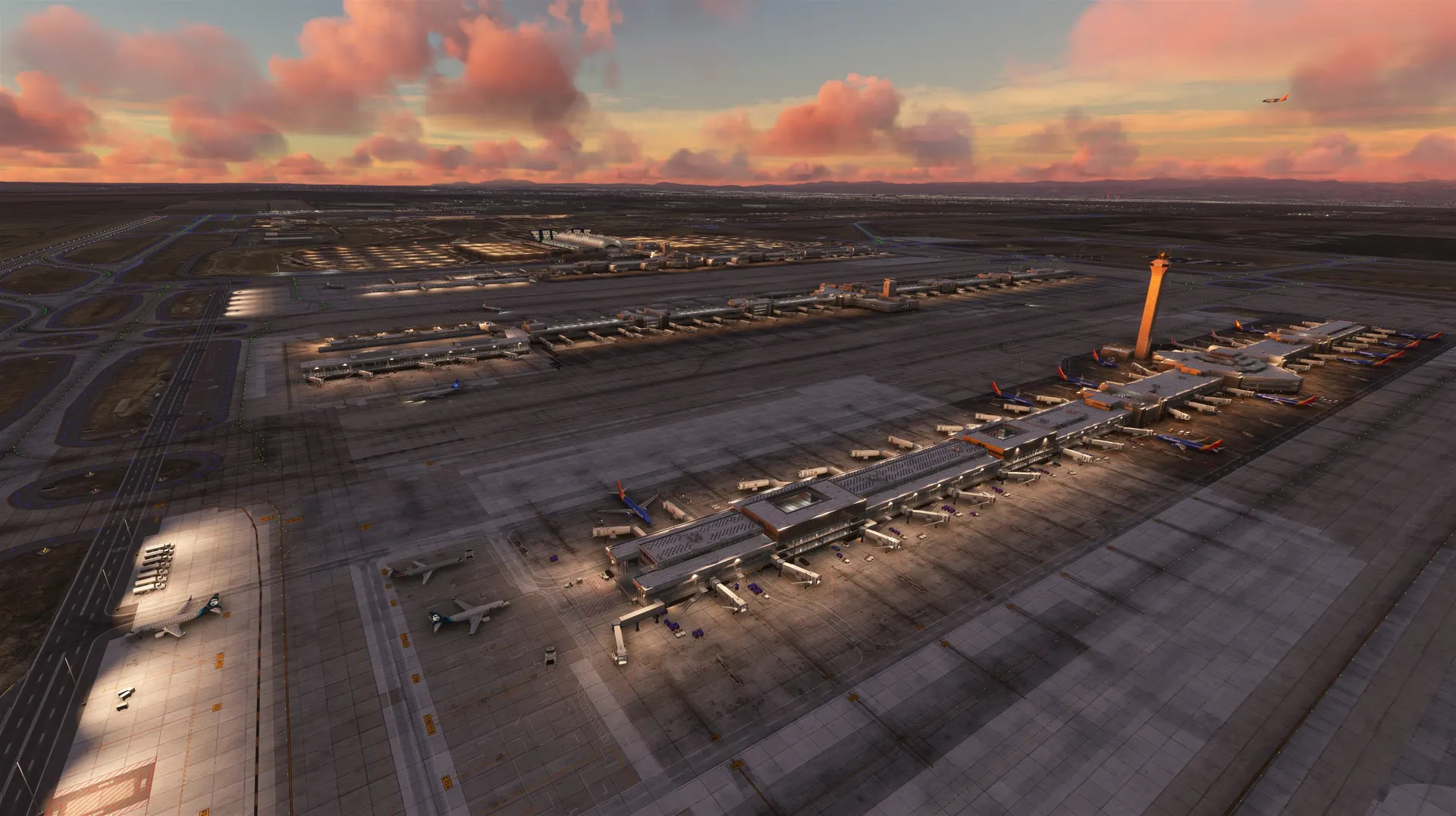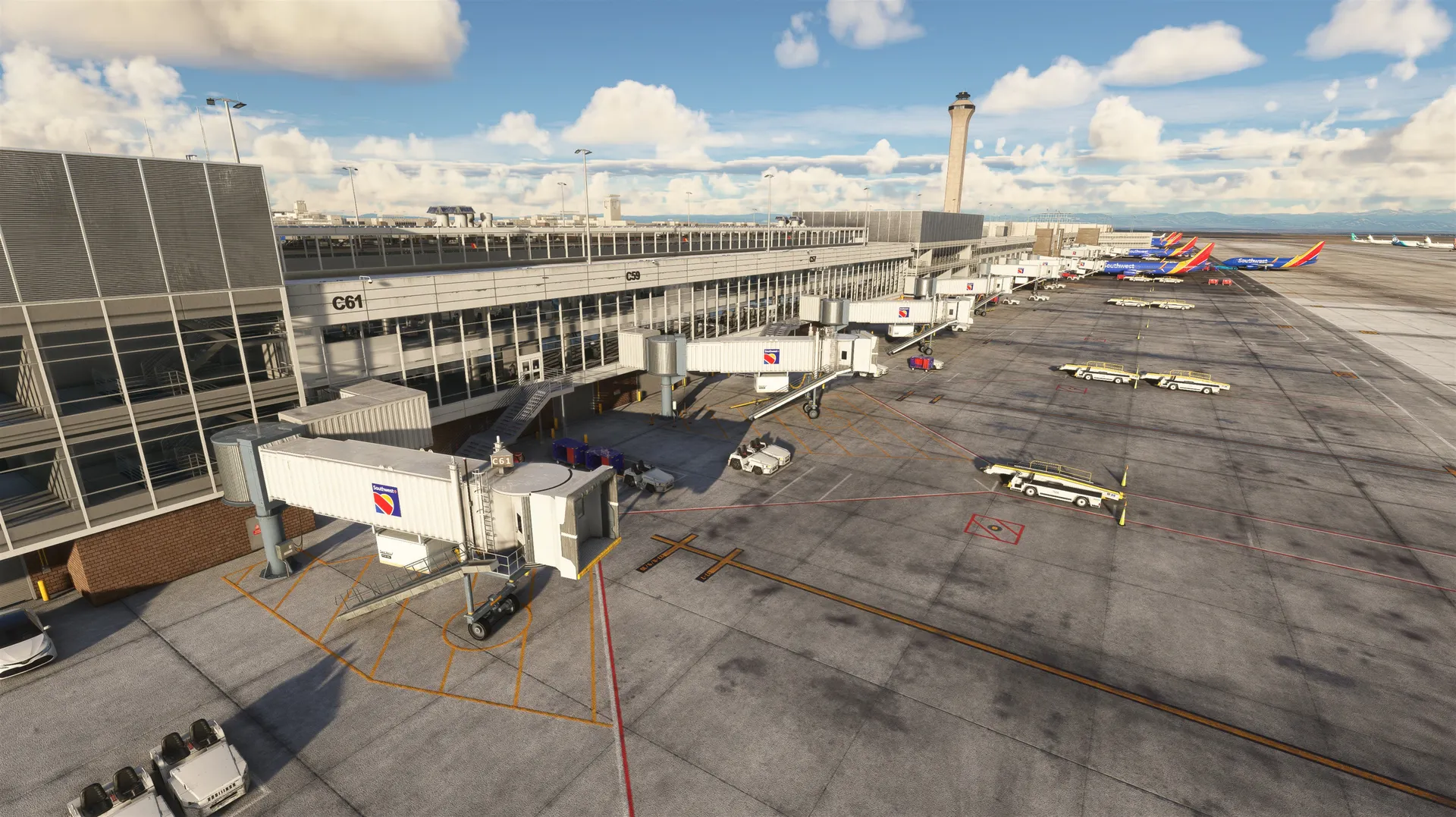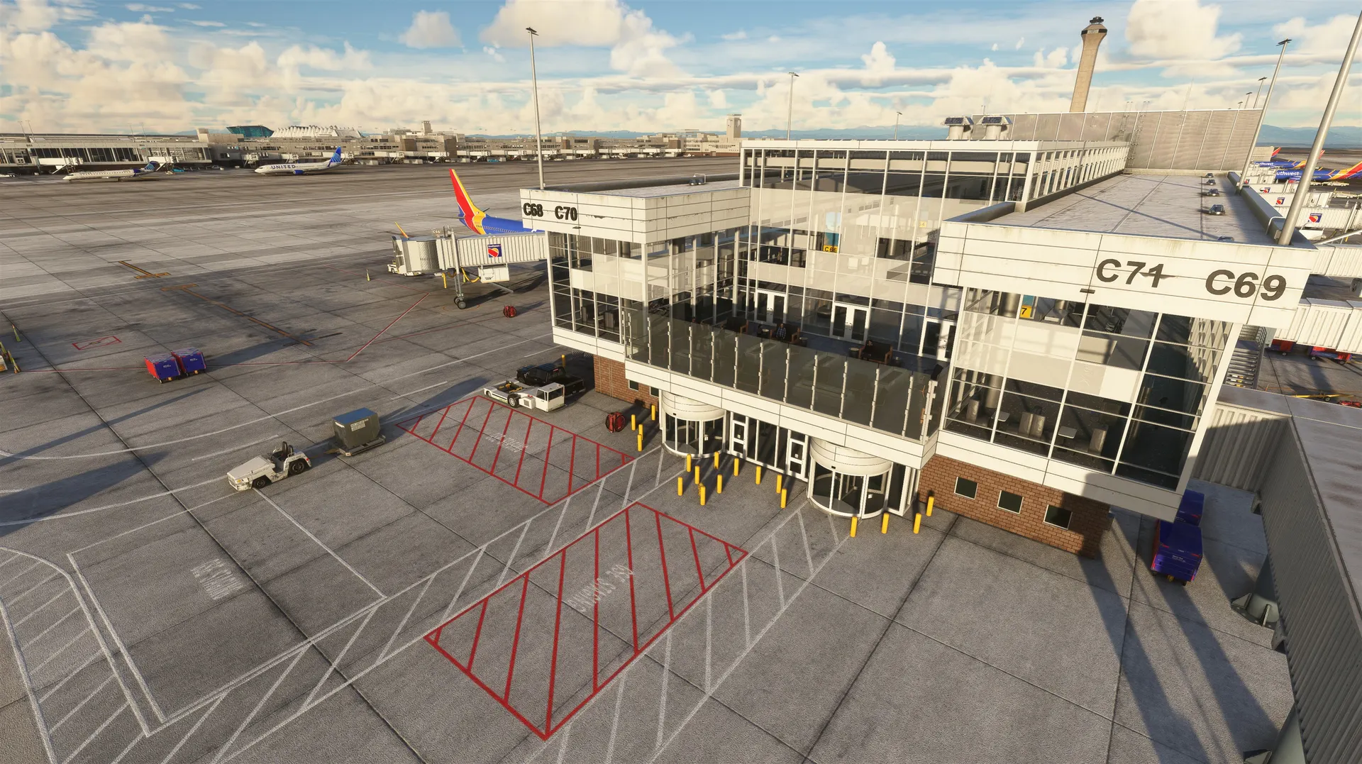 - Custom models for all airport buildings.