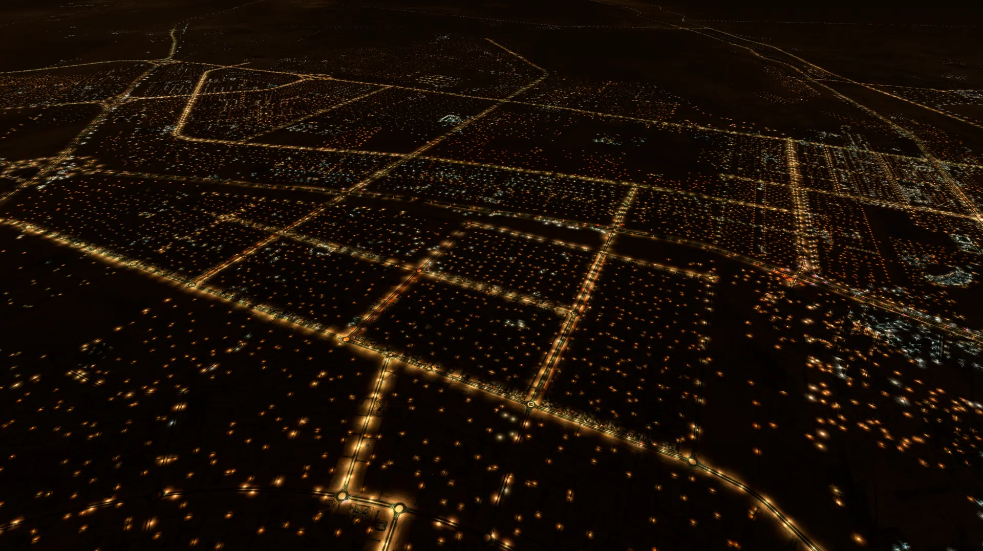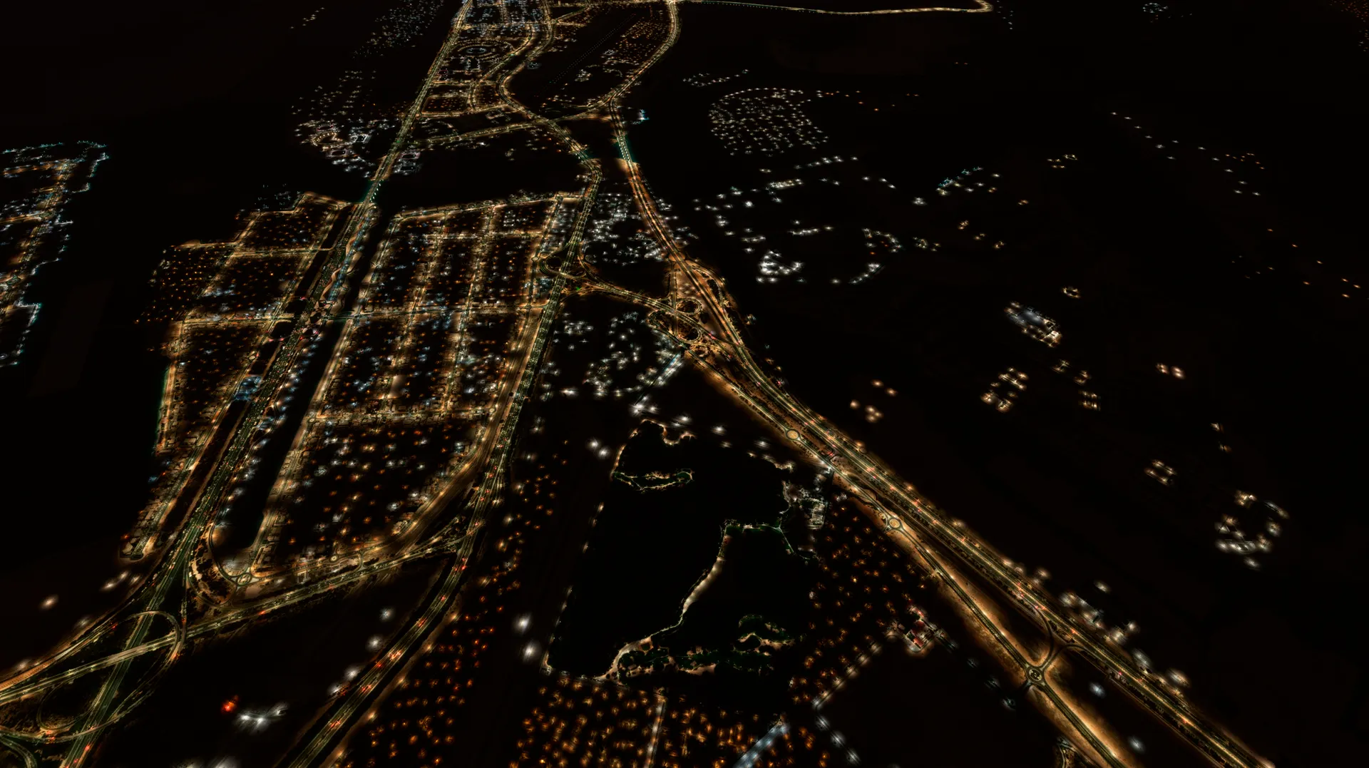 The light intensity has been carefully calibrated to deliver a consistent, clean, and visually striking road grid, reflecting the modern and well-planned urban layout of Abu Dhabi. Designed to be lightweight and highly optimized, it ensures minimal performance impact even over dense areas such as the city center, Corniche Road, Yas Island, Saadiyat Island, and surrounding metropolitan zones.