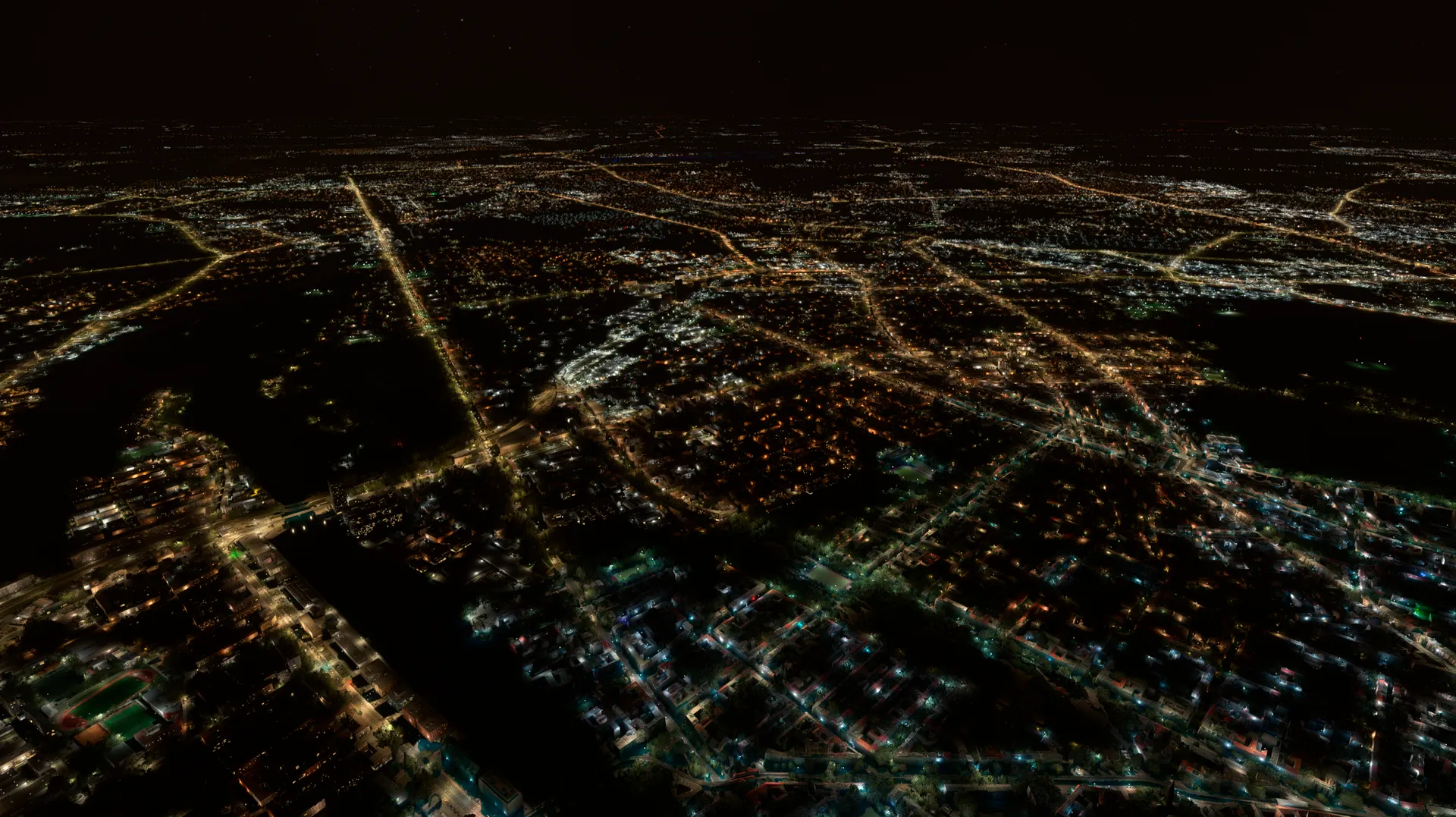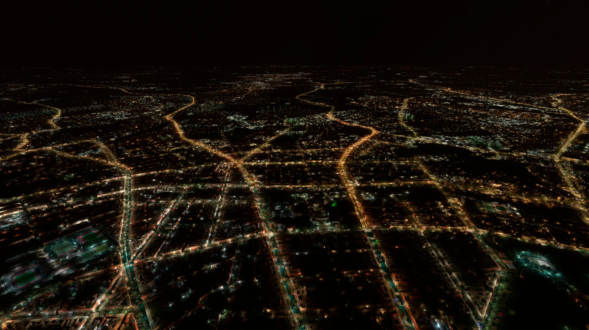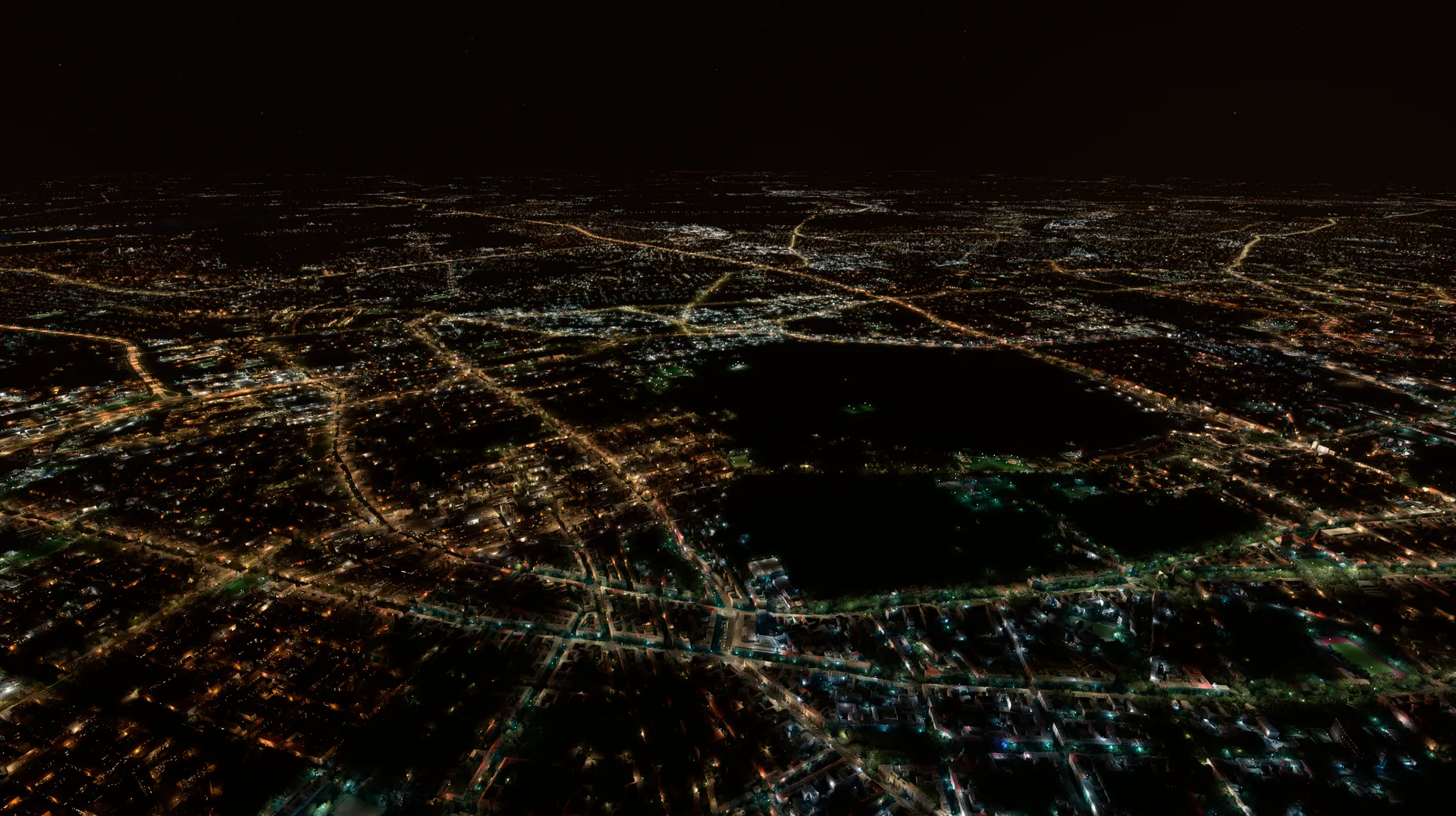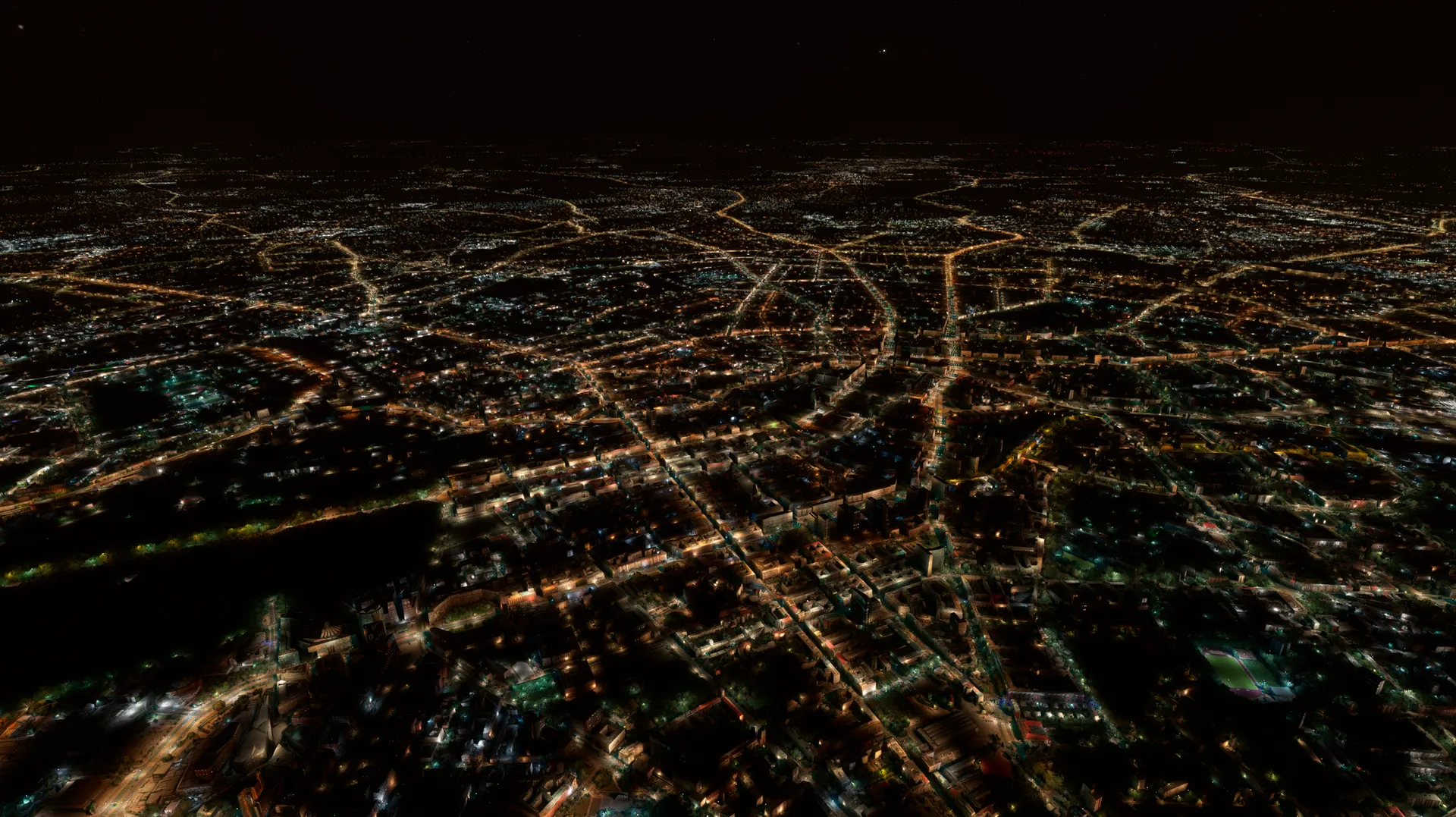 Fly over Berlin and its surrounding areas with a revitalized night-time visual experience.