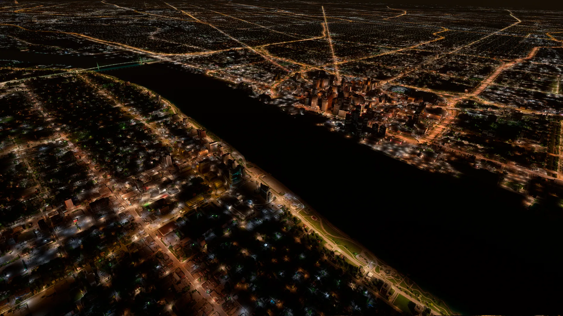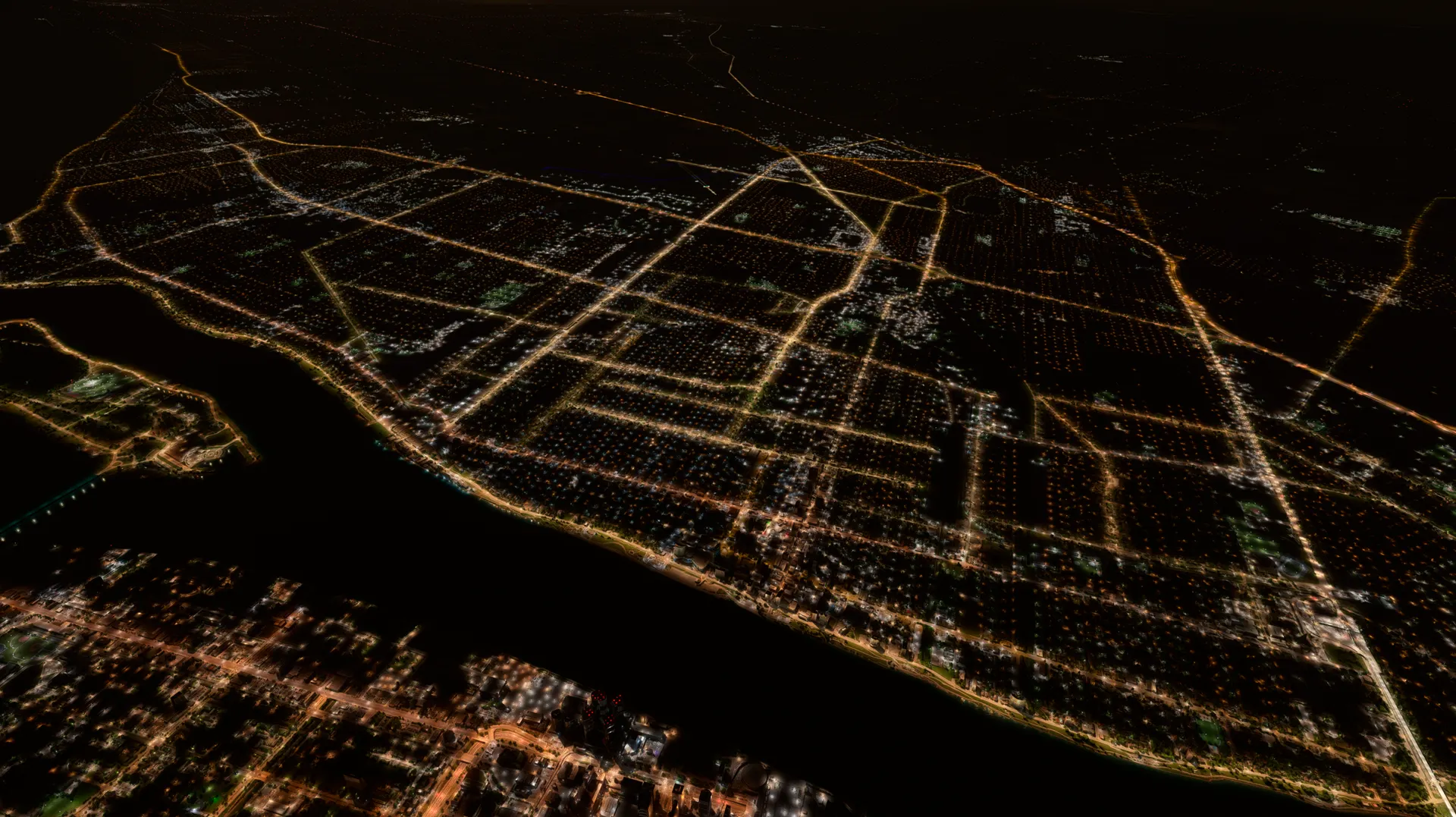 The default simulator lighting remains fully intact, preserving its natural color, tone, and positioning. This add-on seamlessly complements the existing system, enriching the overall atmosphere to more closely resemble the real night-time glow of Detroit — all without modifying buildings, landmarks, or autogen scenery.