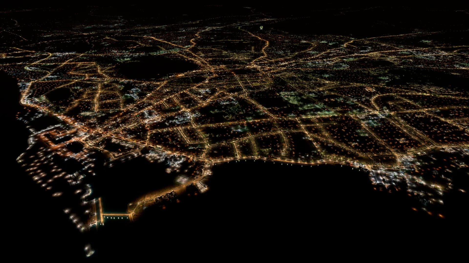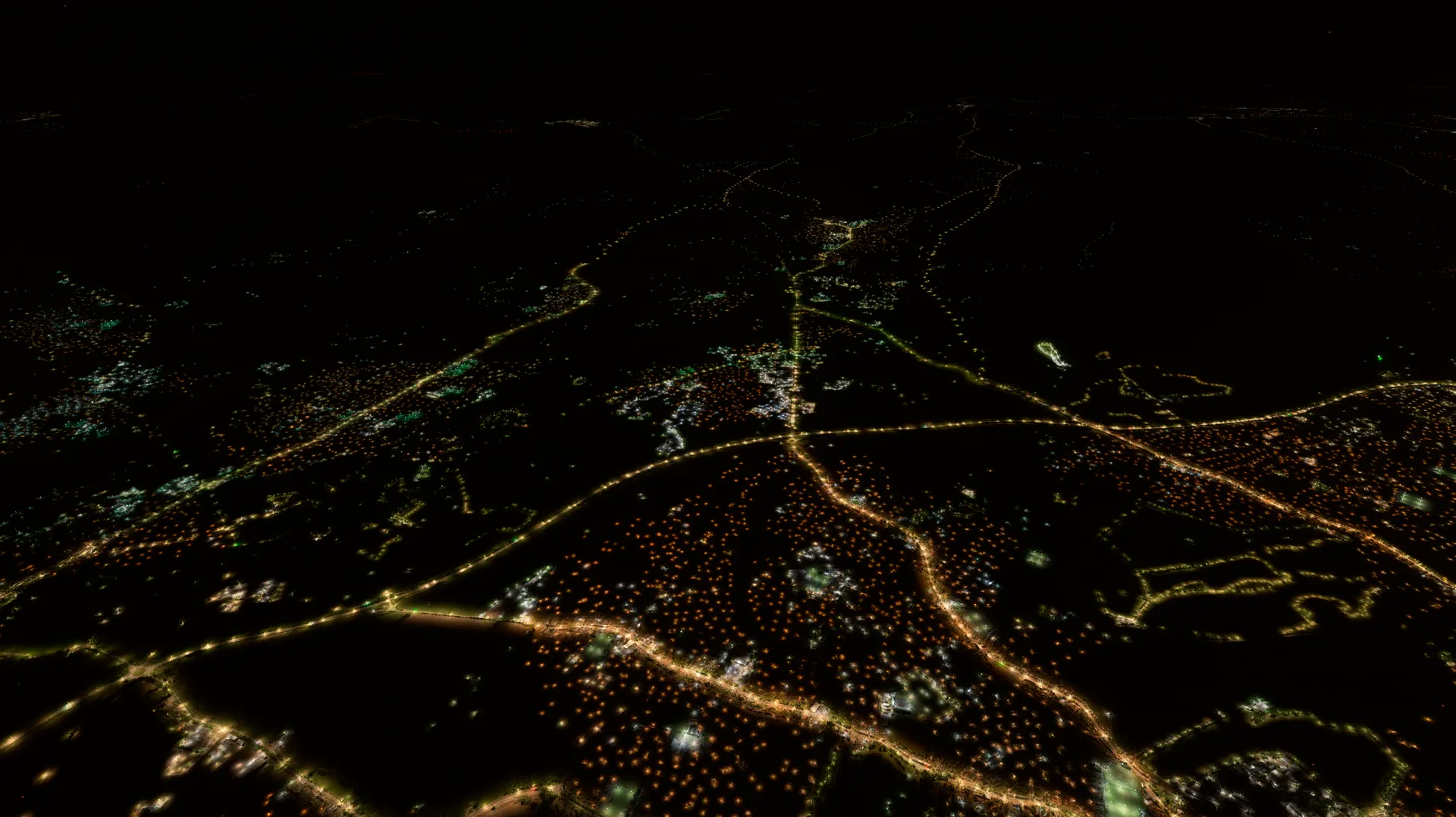 Fly over Edinburgh and its surrounding areas with a revitalized night-time visual experience.