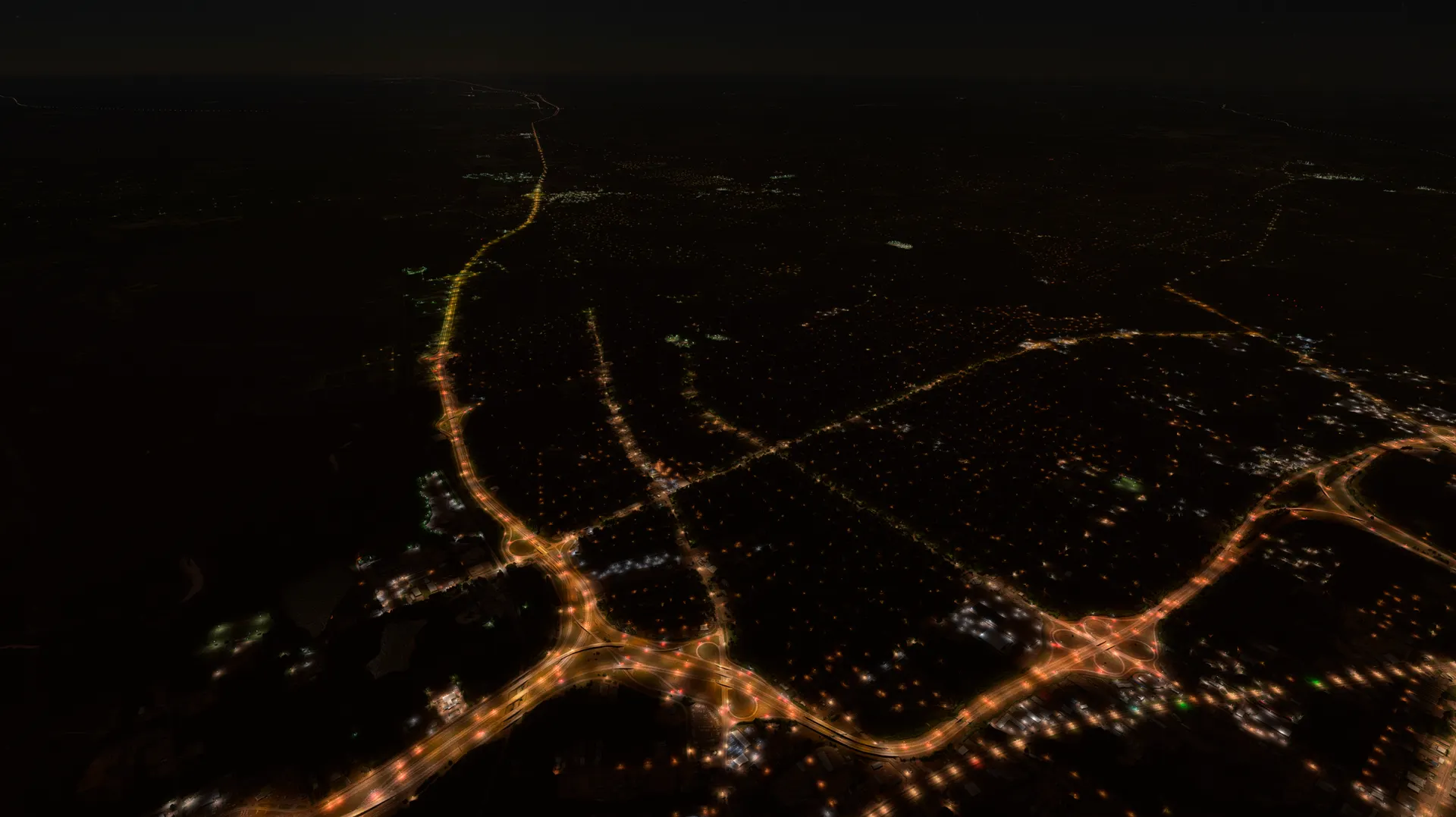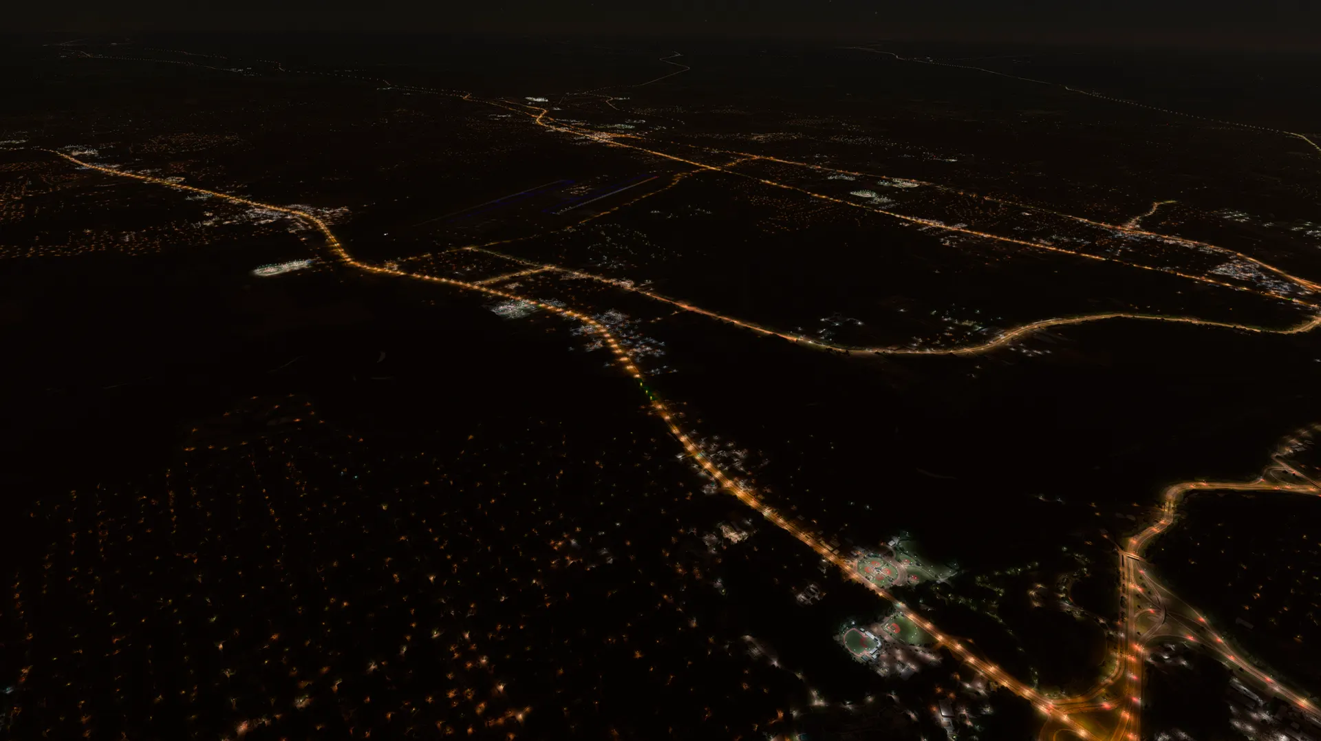 One of its most notable features is the extended visibility range of road lights. Highways, interchanges, and city streets are now easier to identify from higher altitudes, offering a more realistic and visually rich experience for night-time IFR and VFR flights, visual approaches, and low-level routes across the city and nearby suburbs.