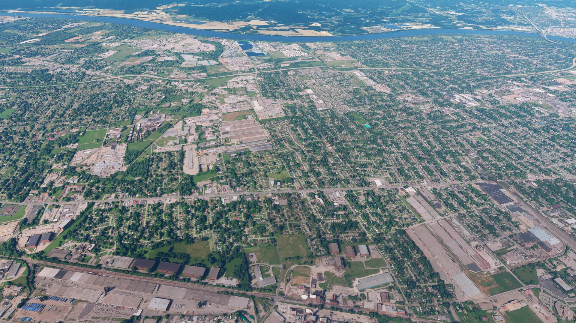 Stunning visuals: Fly over Louisville with only high-fidelity photogrammetric trees, eliminating out-of-place bushes and vegetation that disrupt realism—especially along the Ohio River and urban areas.