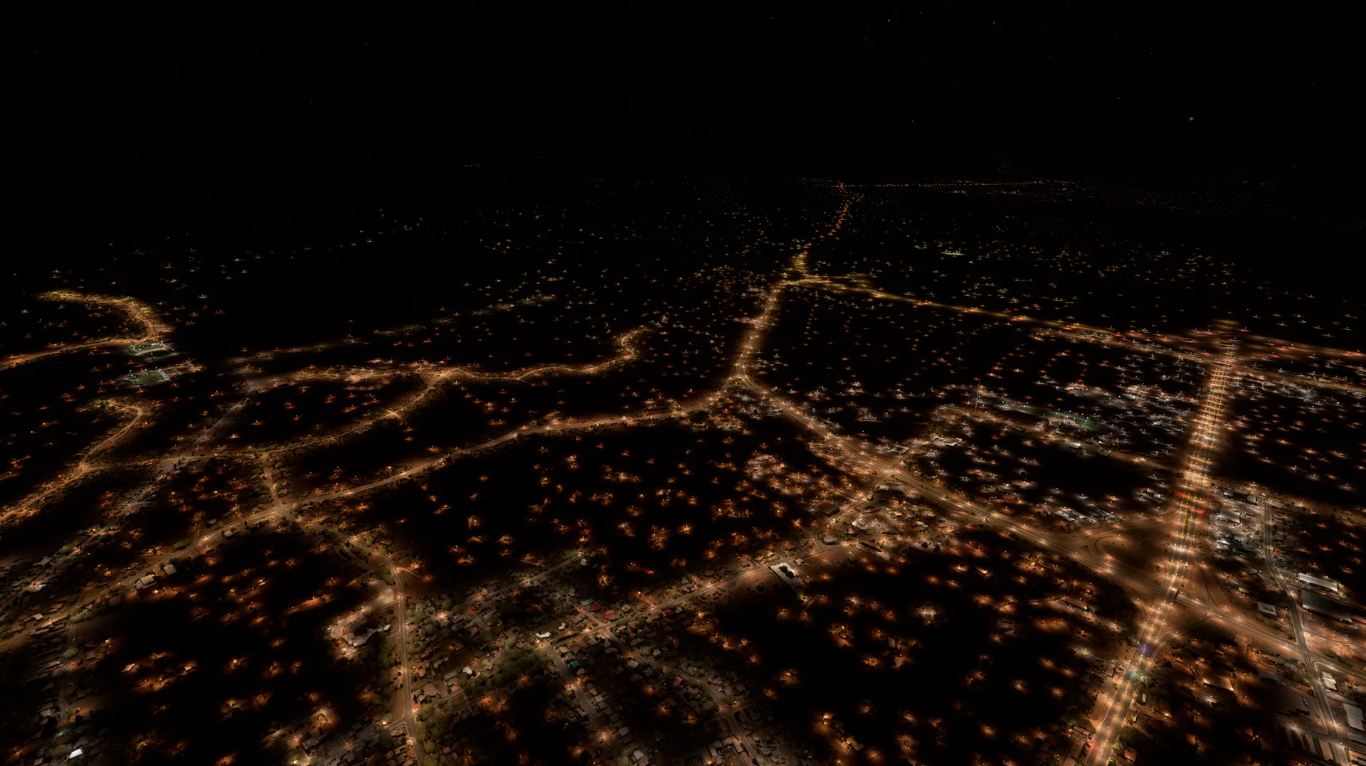 Fly over Santa Fe and its surrounding areas with a revitalized night-time visual experience.