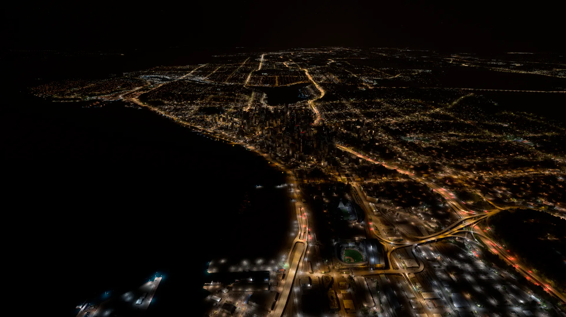 Fly over Seattle, Tacoma, and the Puget Sound region with a refreshed and immersive night-time visual experience.