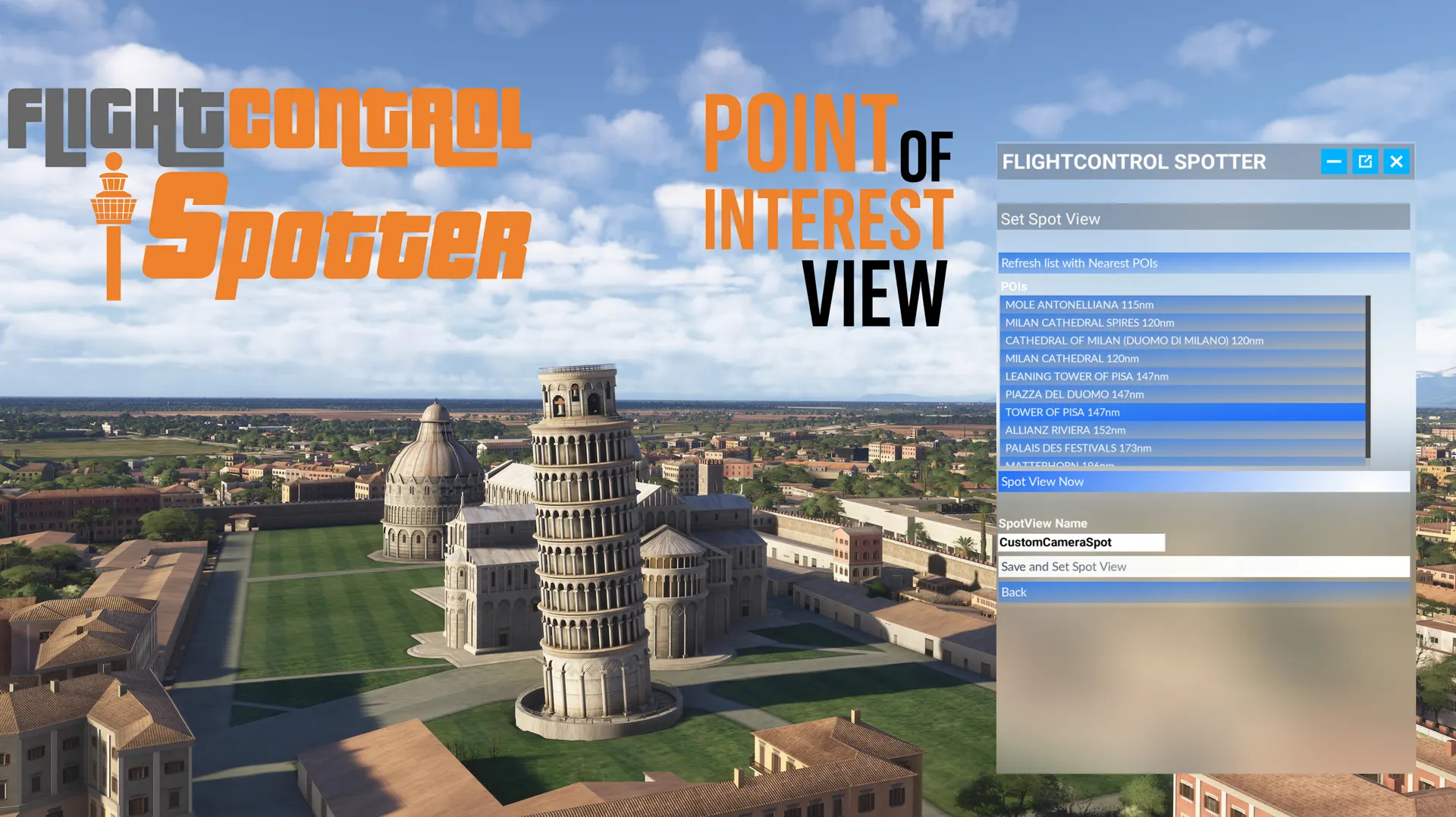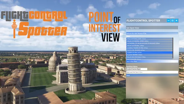 Spot View by POIs – Browse default base MSFS Point of Interests within 200 NM, select it and teleport to his SpotView . Save your favorites for later. (NEW! FROM V1.1)