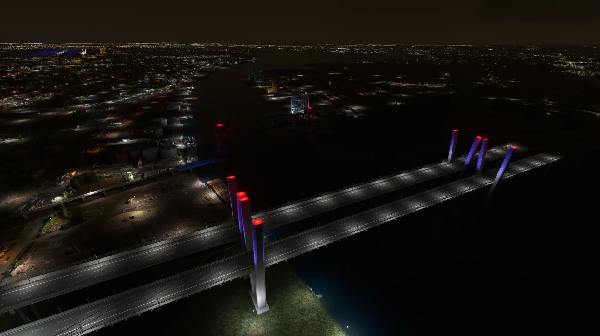This package is for personal use with a single copy of MSFS2020 and not for resale, redistributing or copying. It should not be used with any other add-on which includes bridge or crane models for the area covered in this package.
